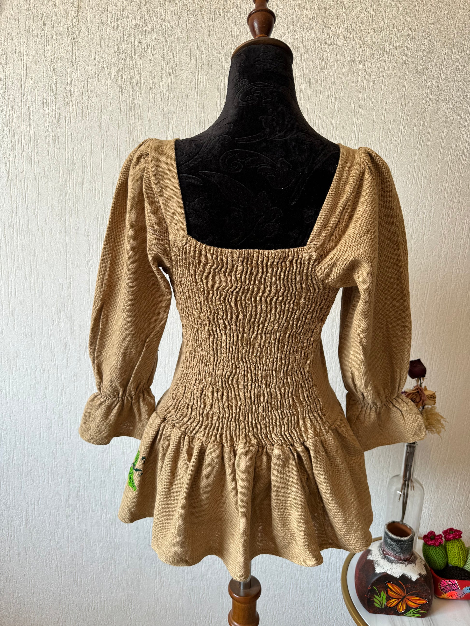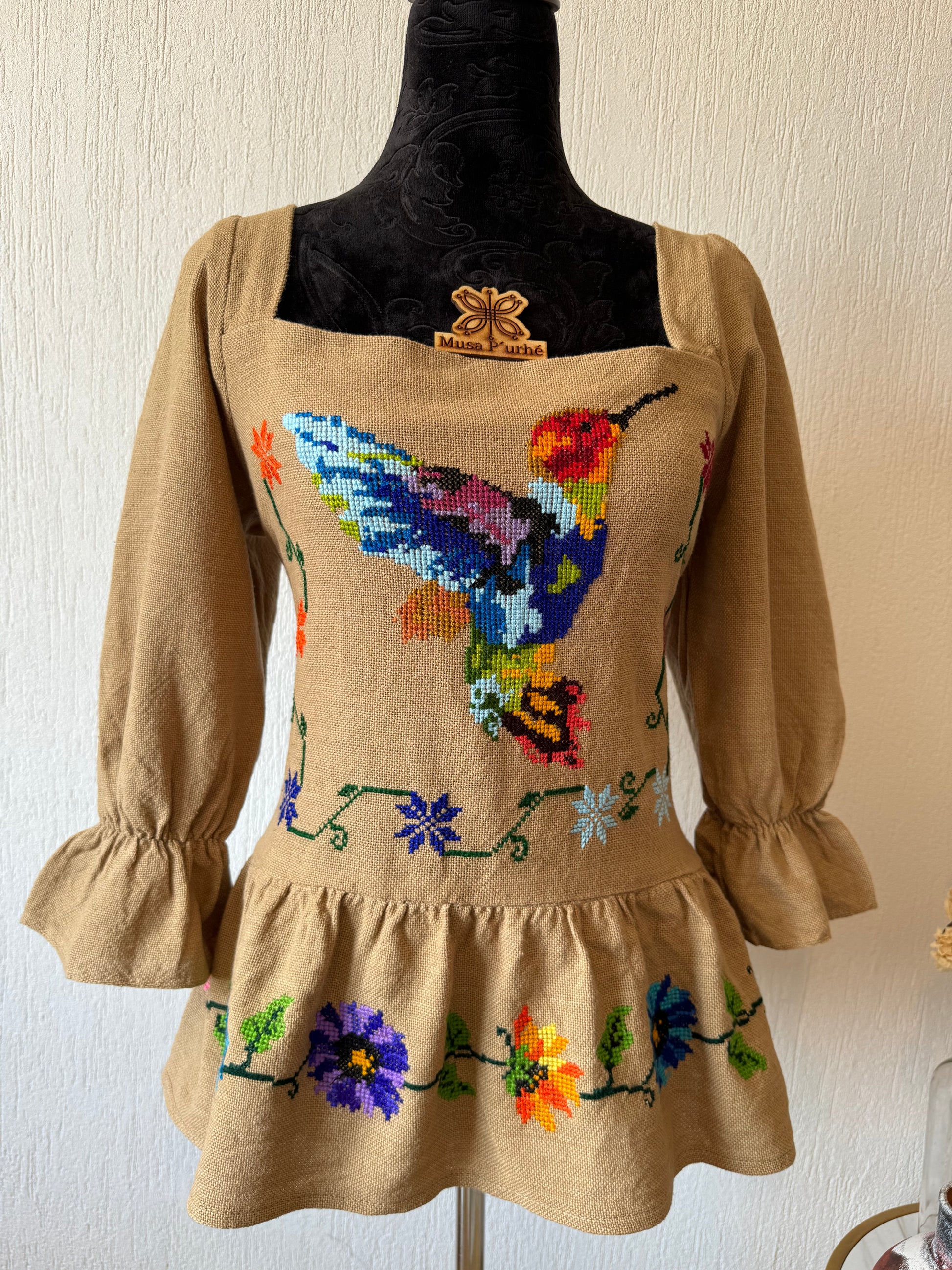 Tejido telar rústico, confeccionado y bordado de historias totalmente a mano