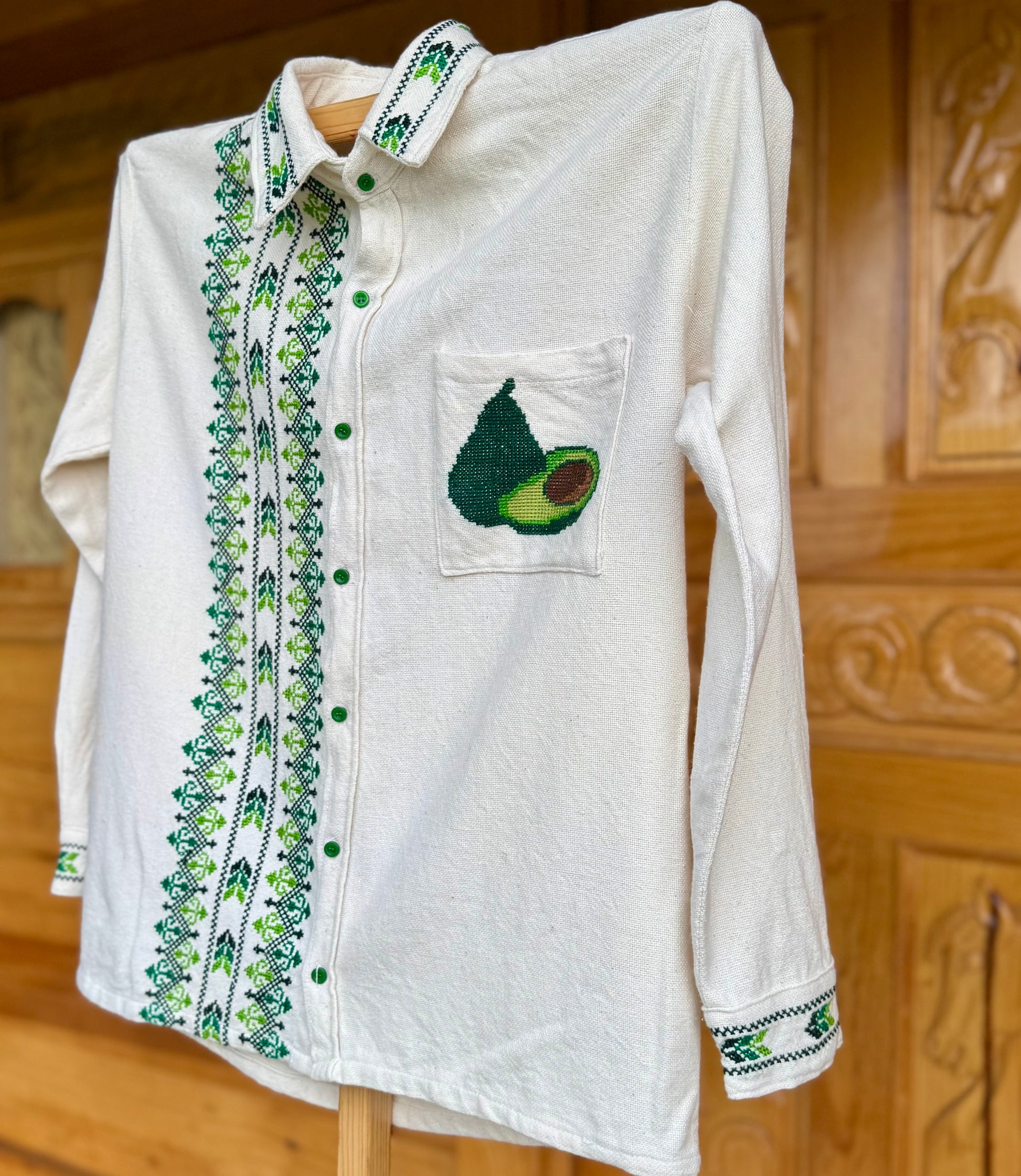 Tejido en telar rústico, confeccionado y bordado en punto de cruz totalmente a mano