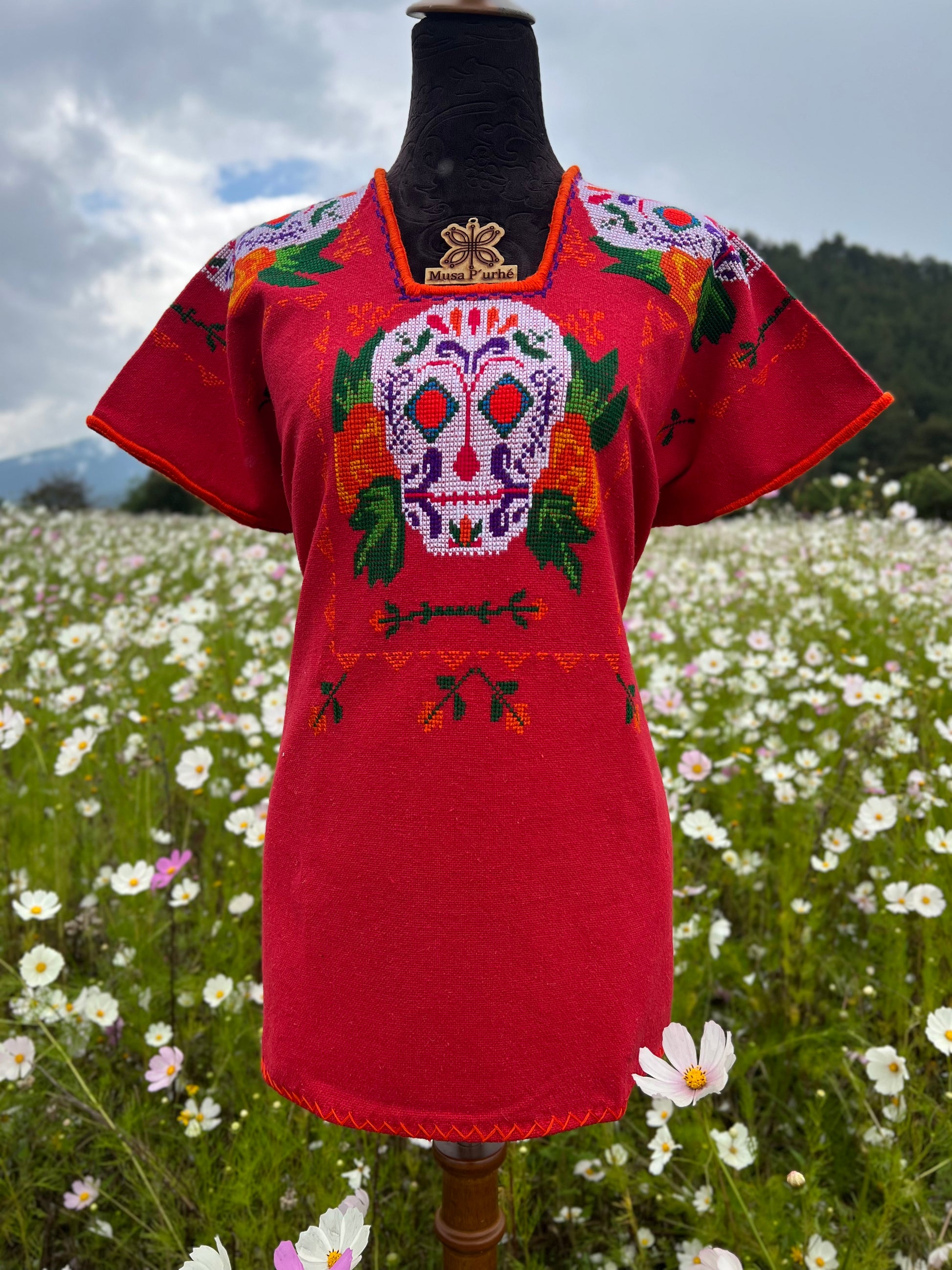 Tejido telar rústico, confeccionado y bordado de historias totalmente a mano.