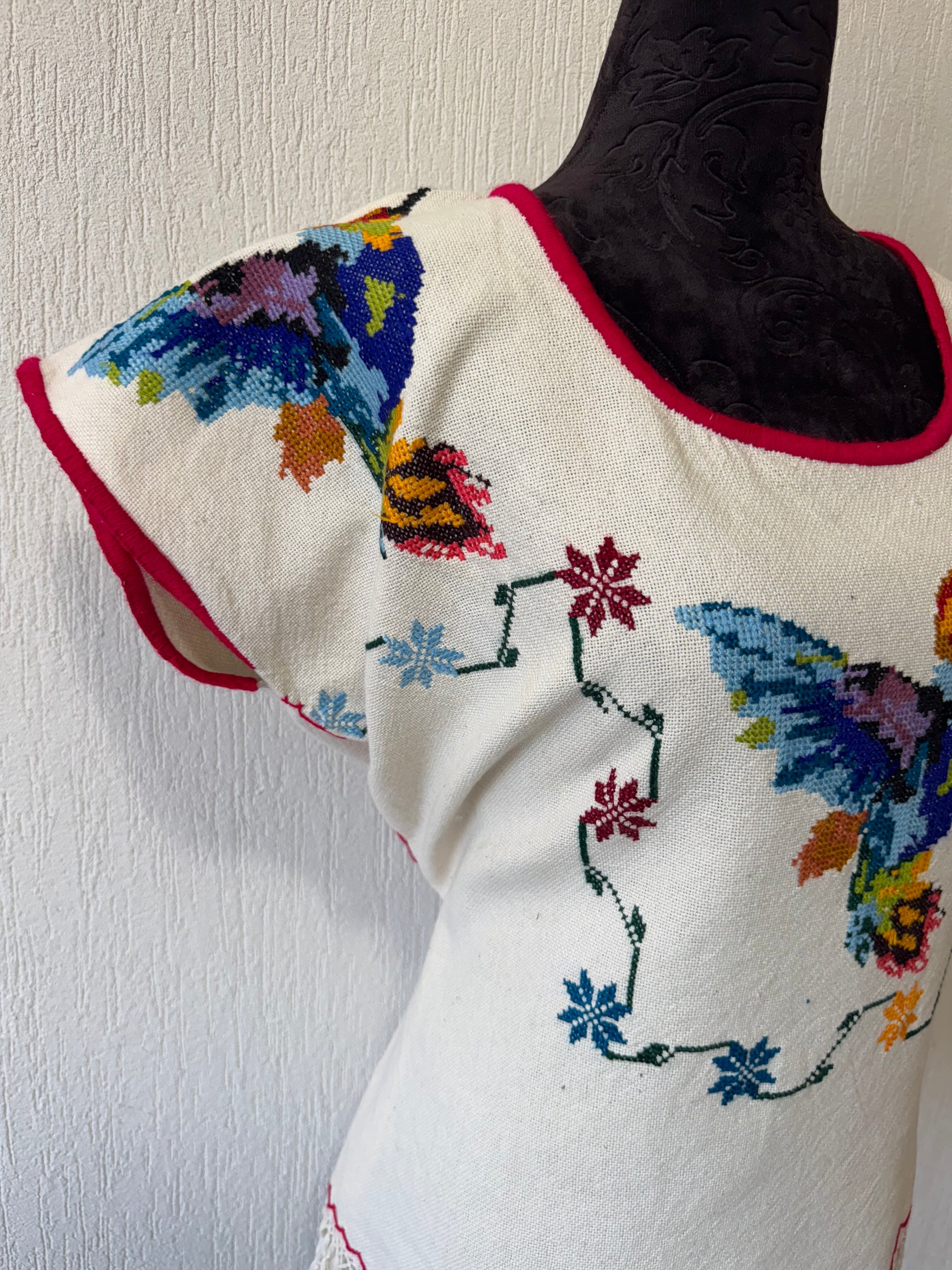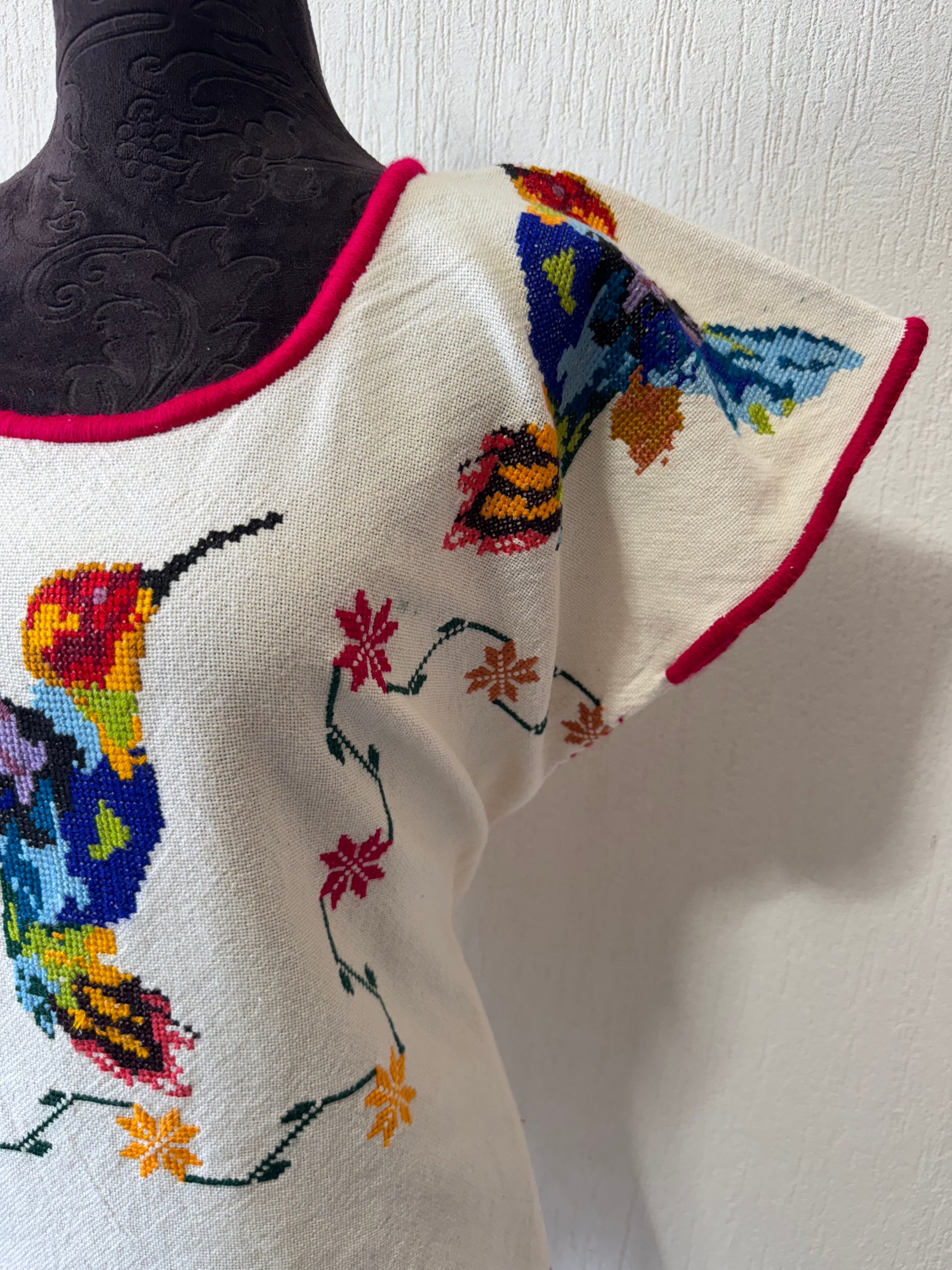 Tejido telar rústico, confeccionado y punto de cruz totalmente a mano