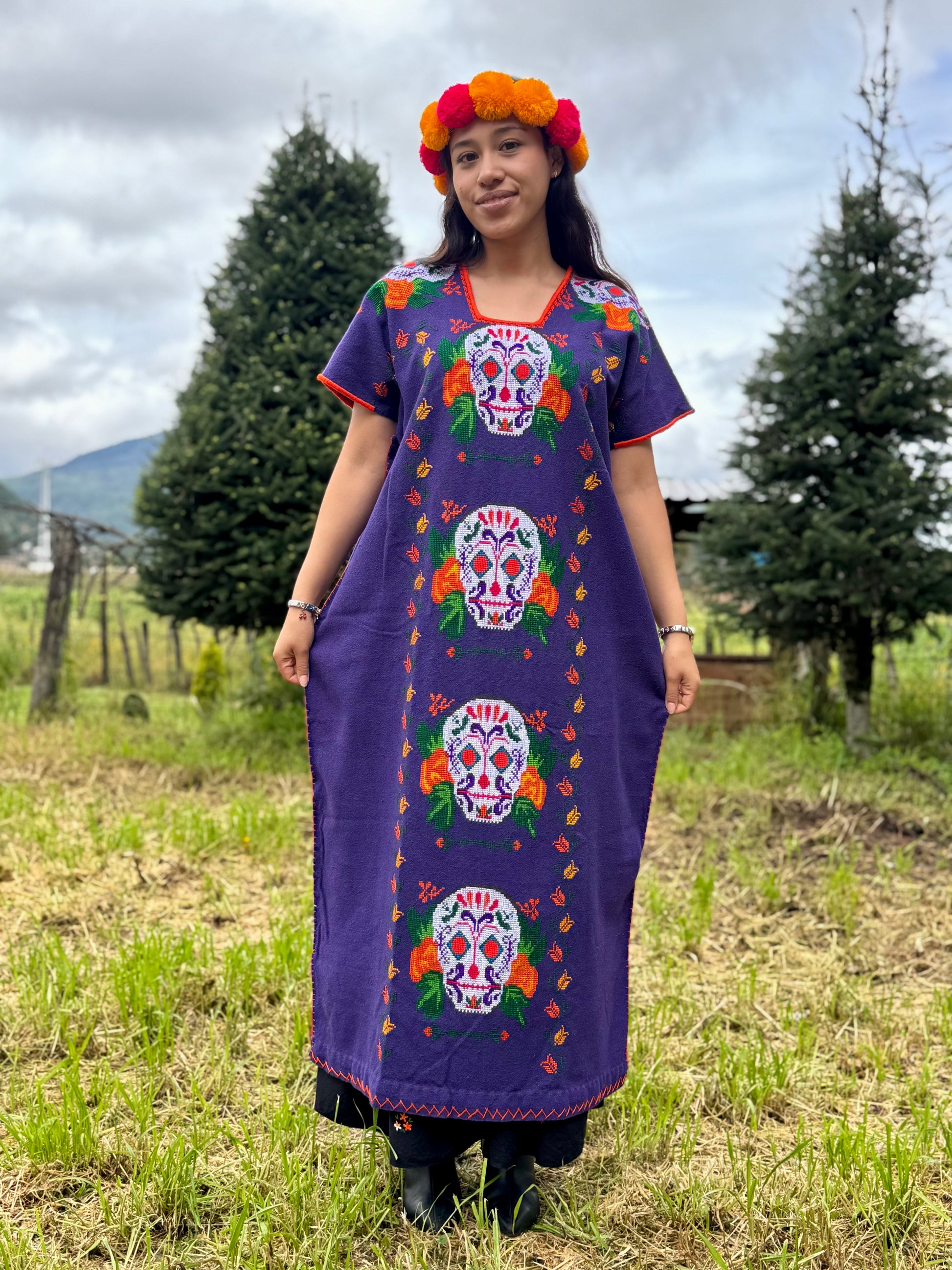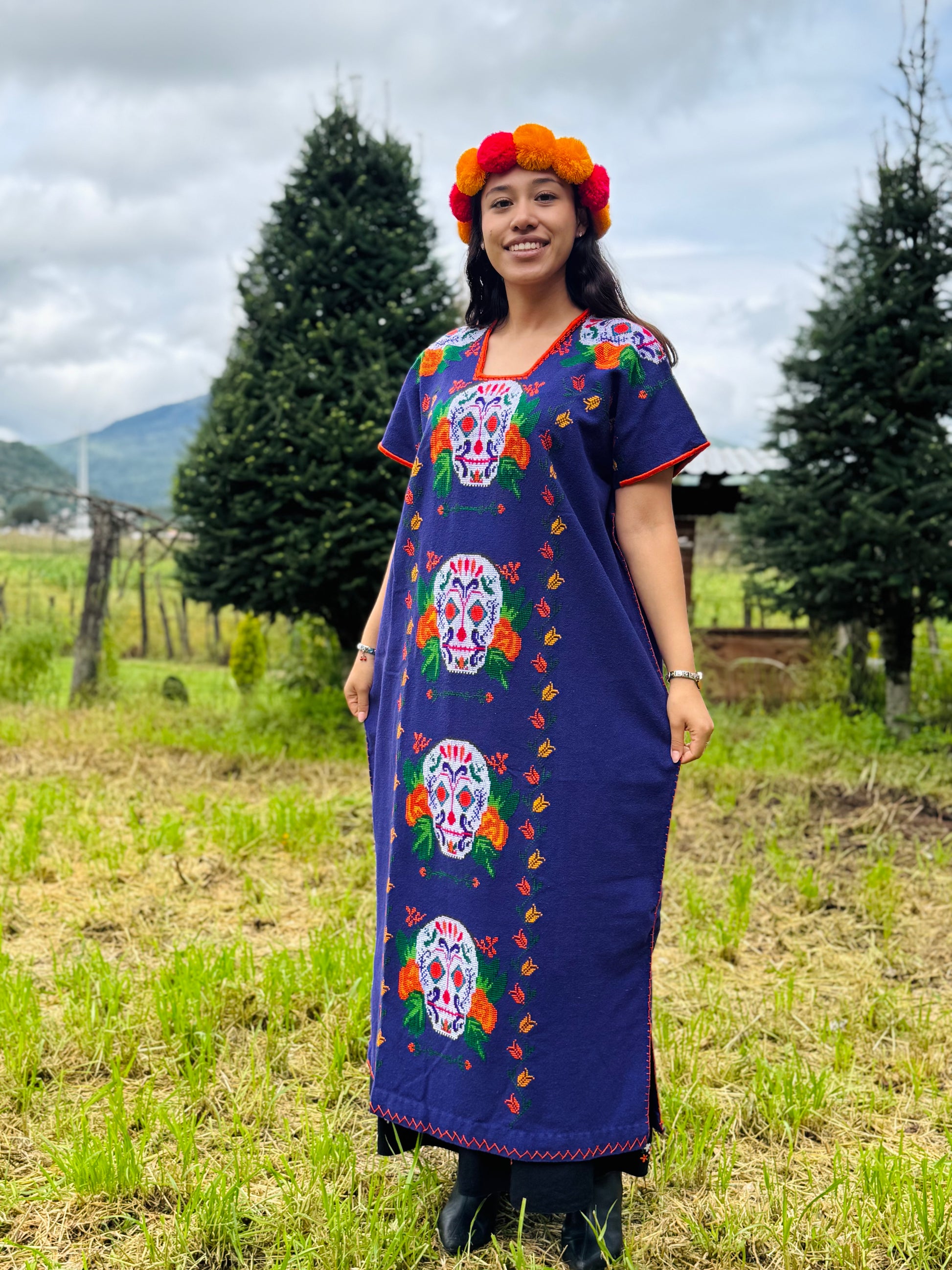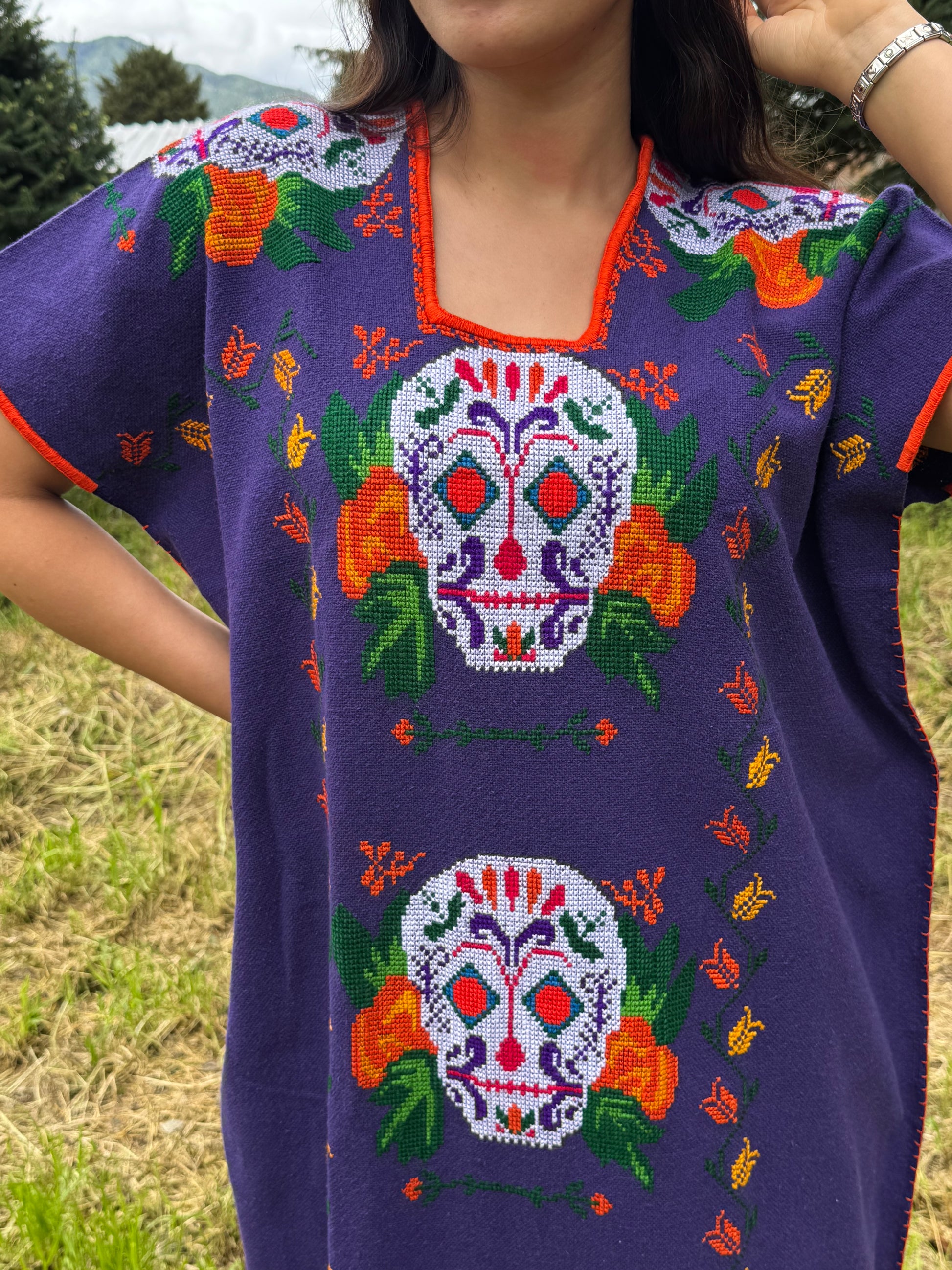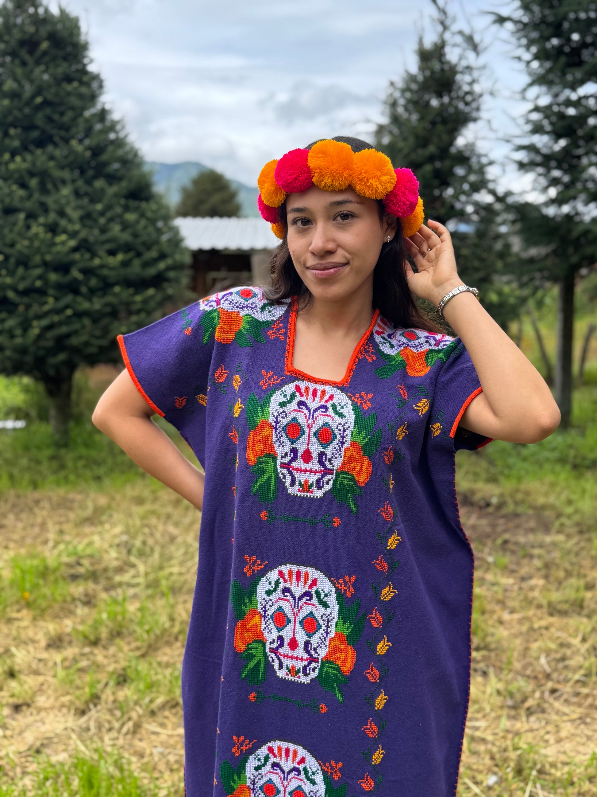 Tejido telar rústico, confeccionado y bordado punto de cruz totalmente a mano.