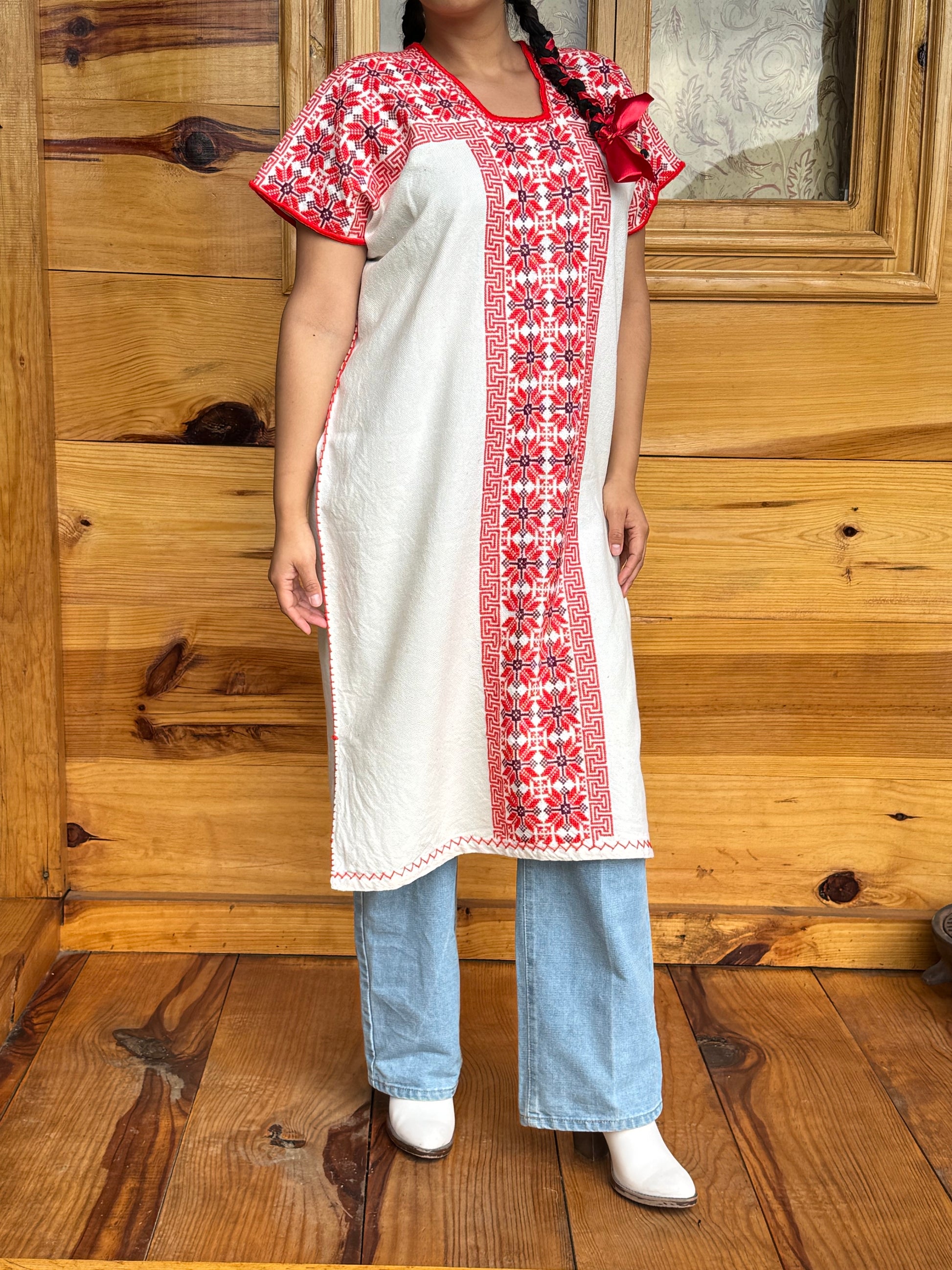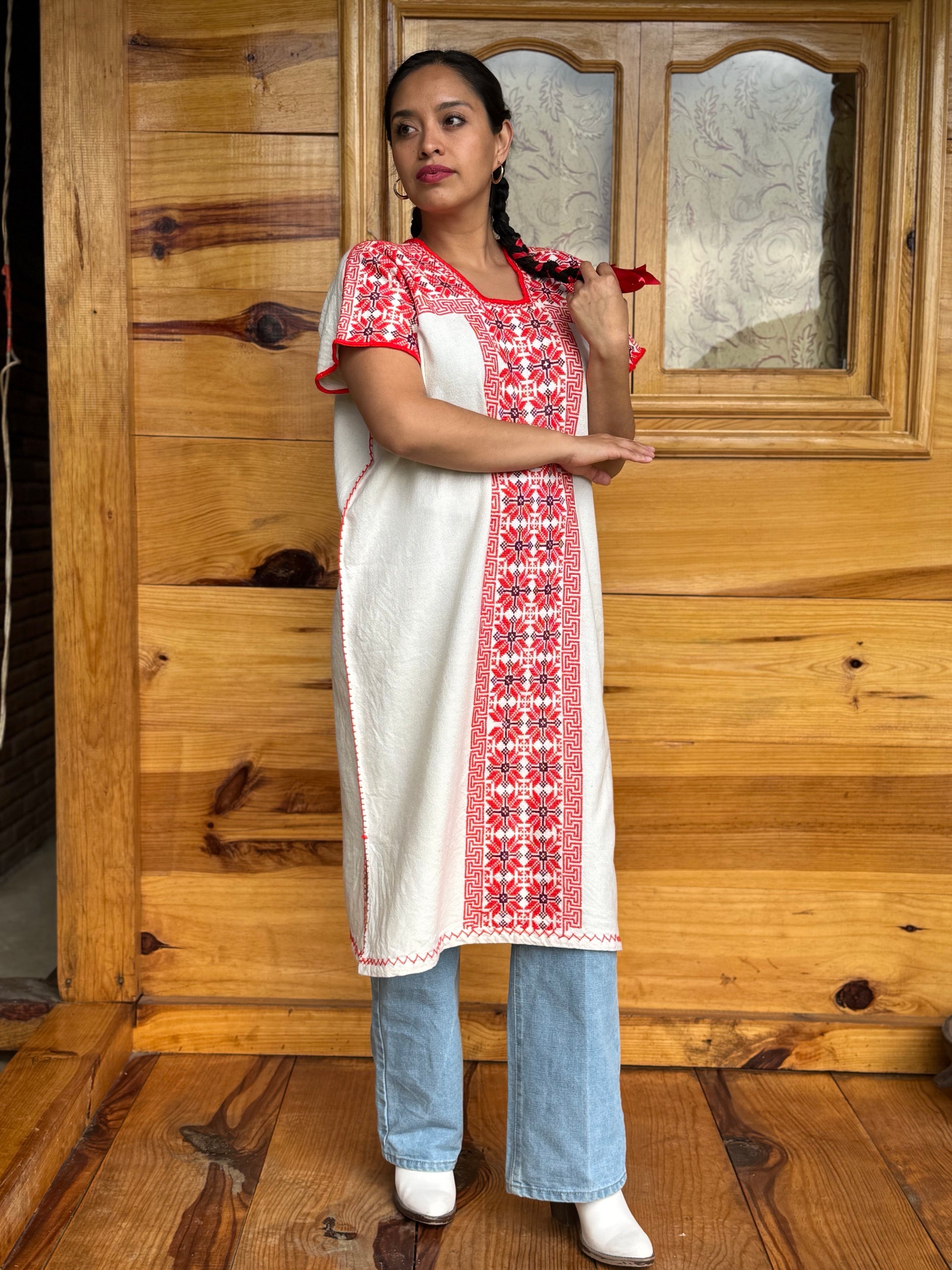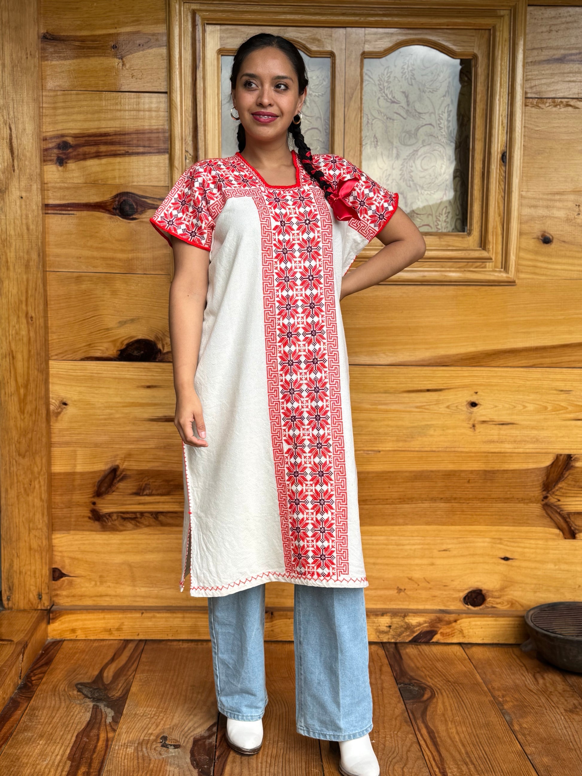 Tejido en telar rústico, confeccionado y bordado en punto de cruz totalmente a mano