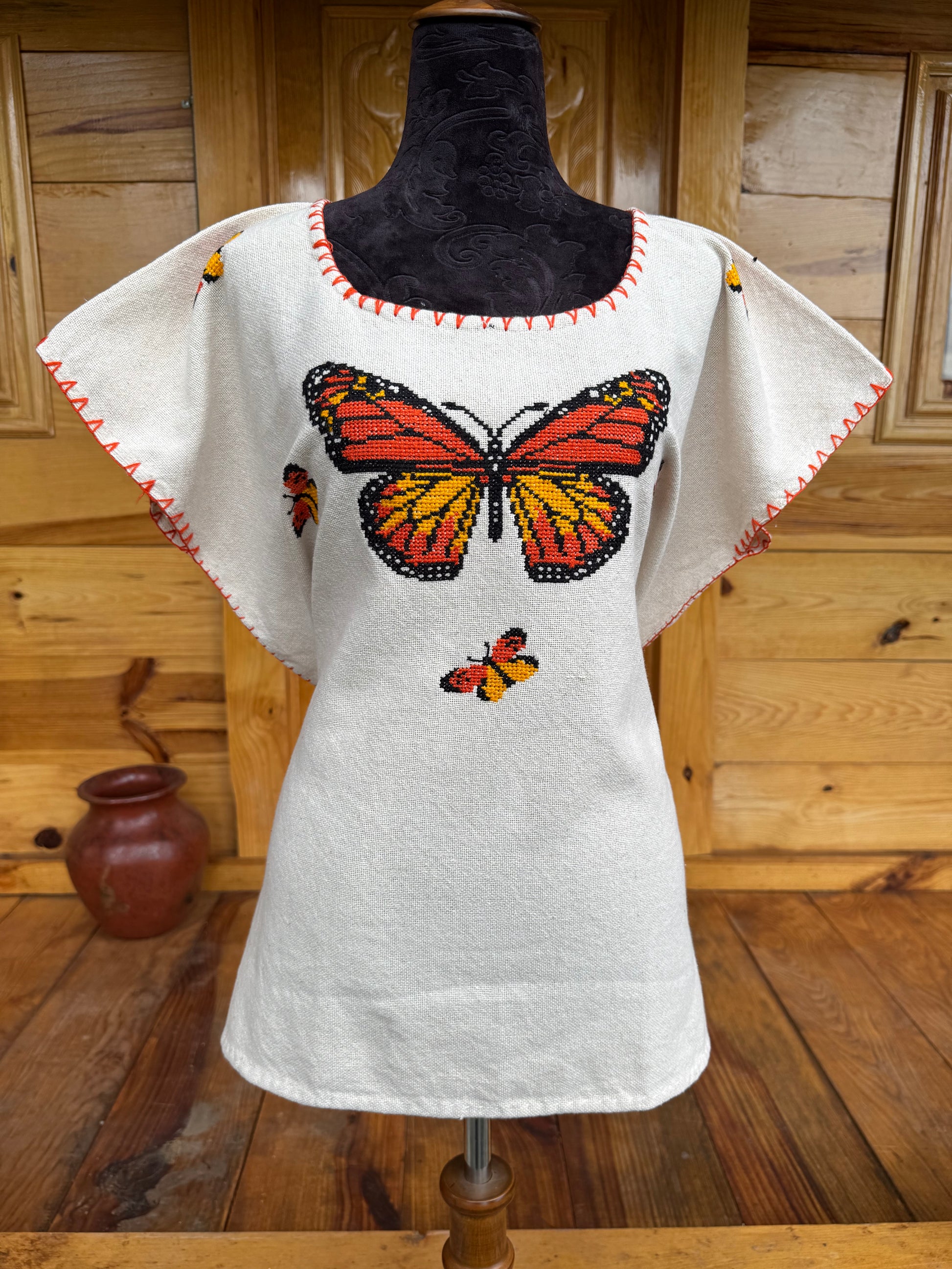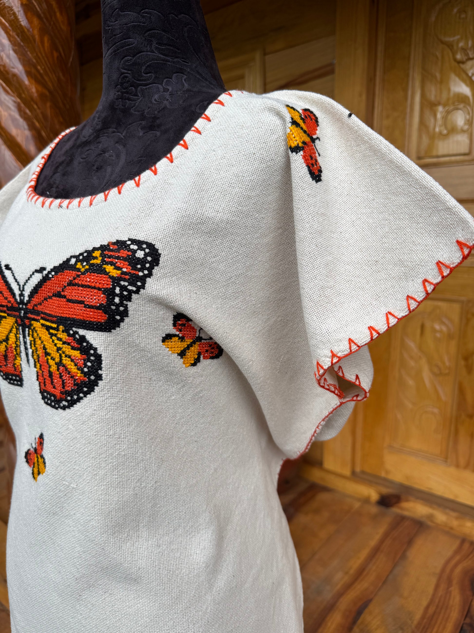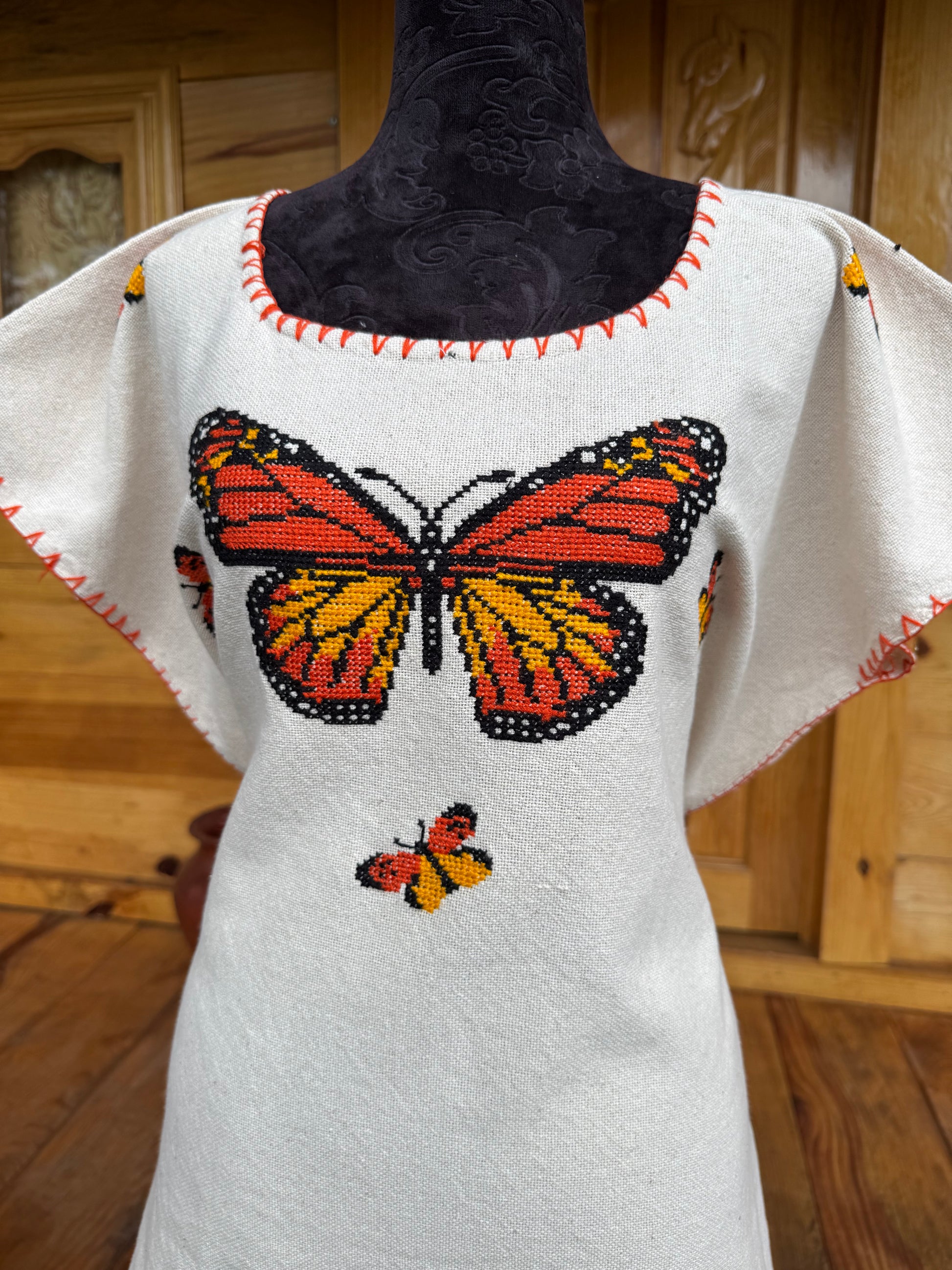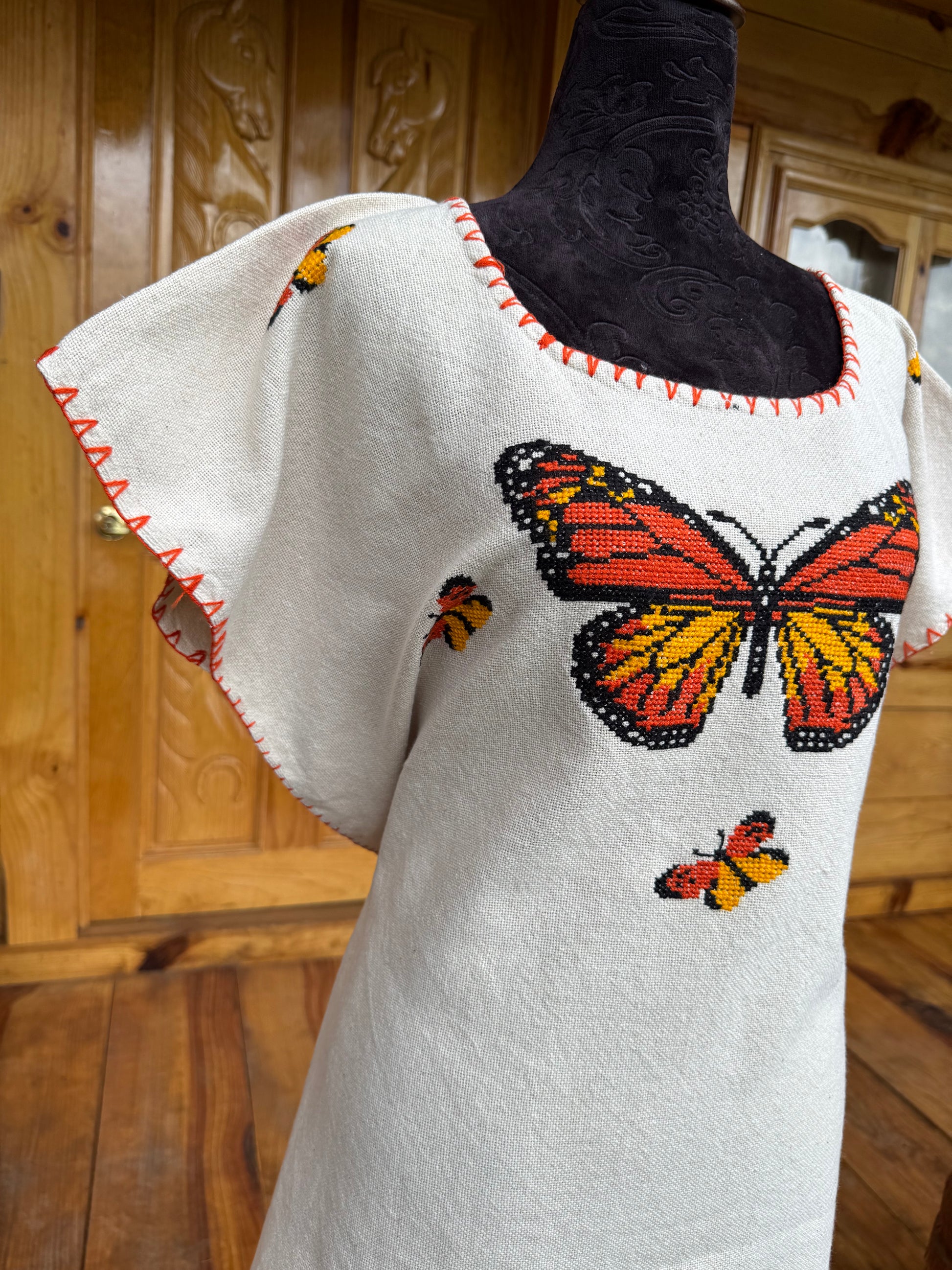 Tejido en telar rústico, confeccionado y bordado en punto de cruz totalmente a mano