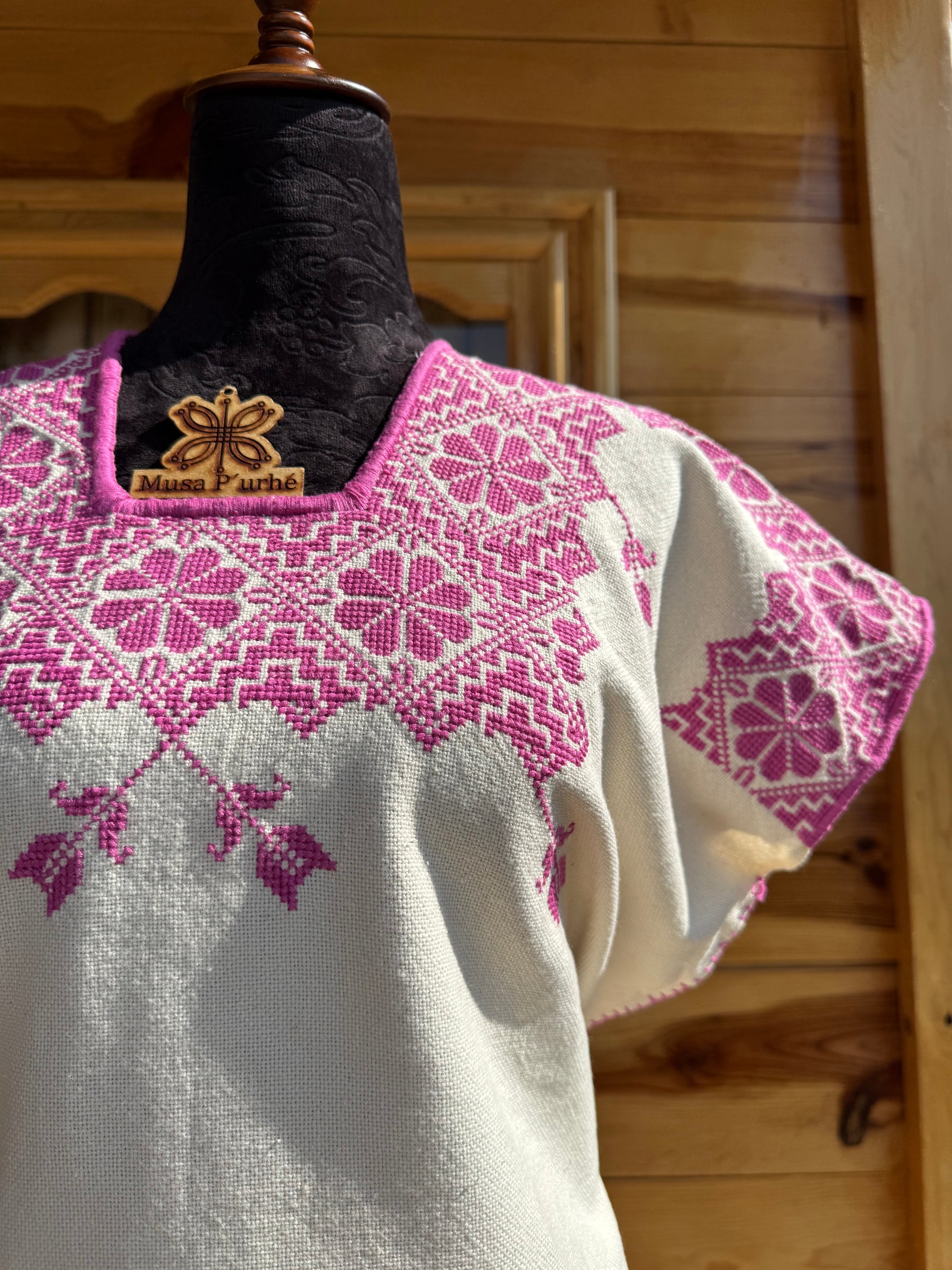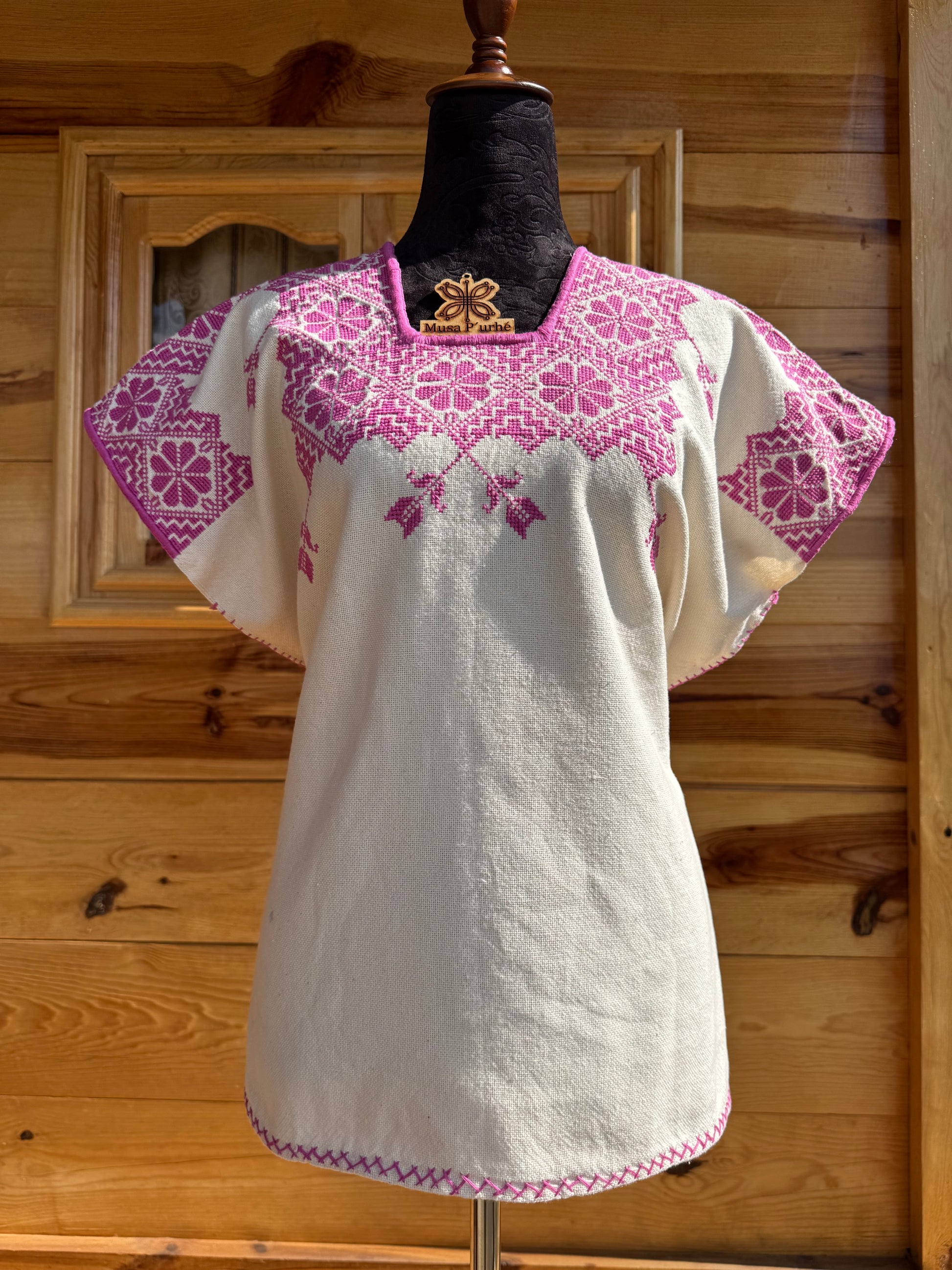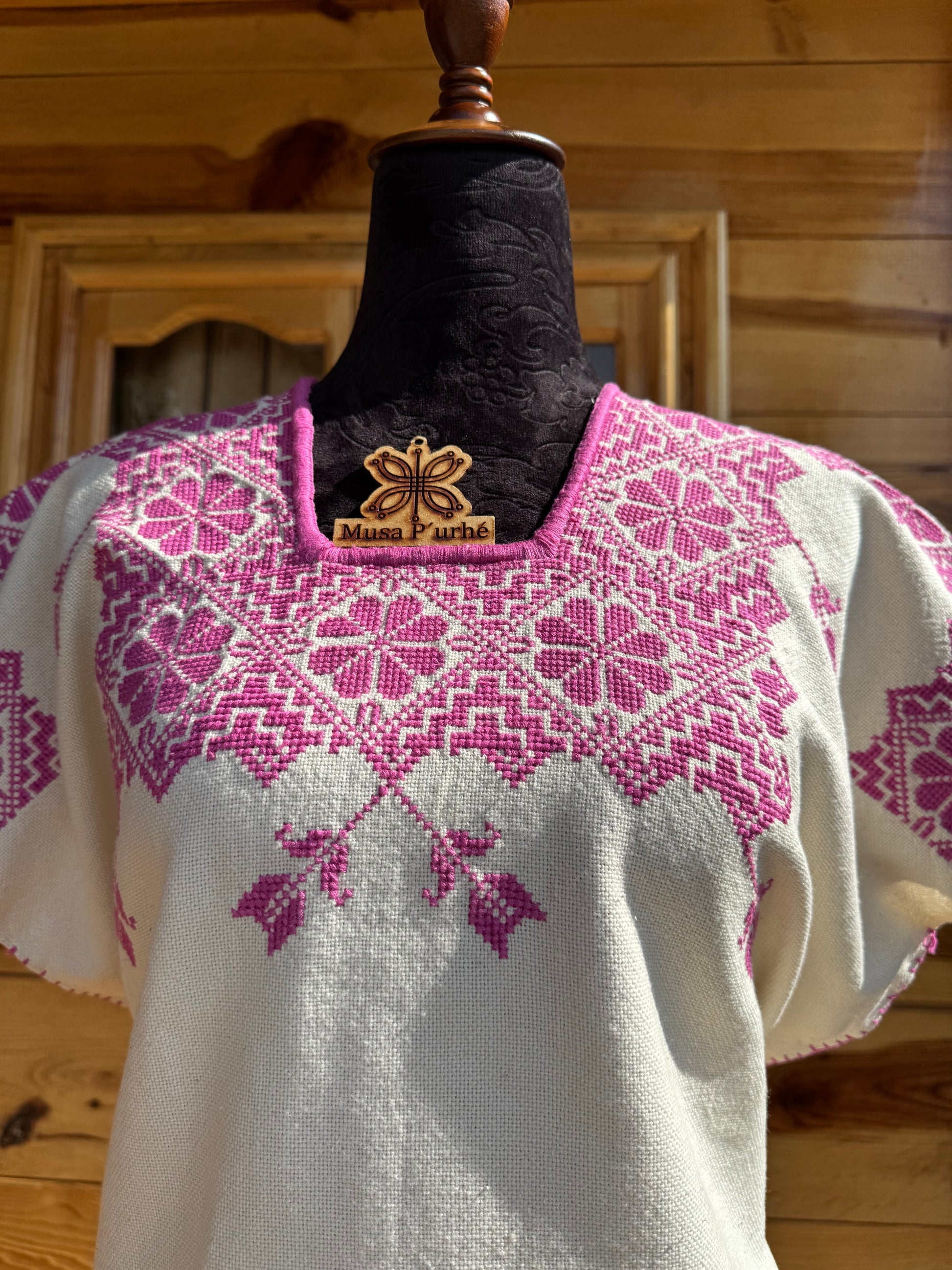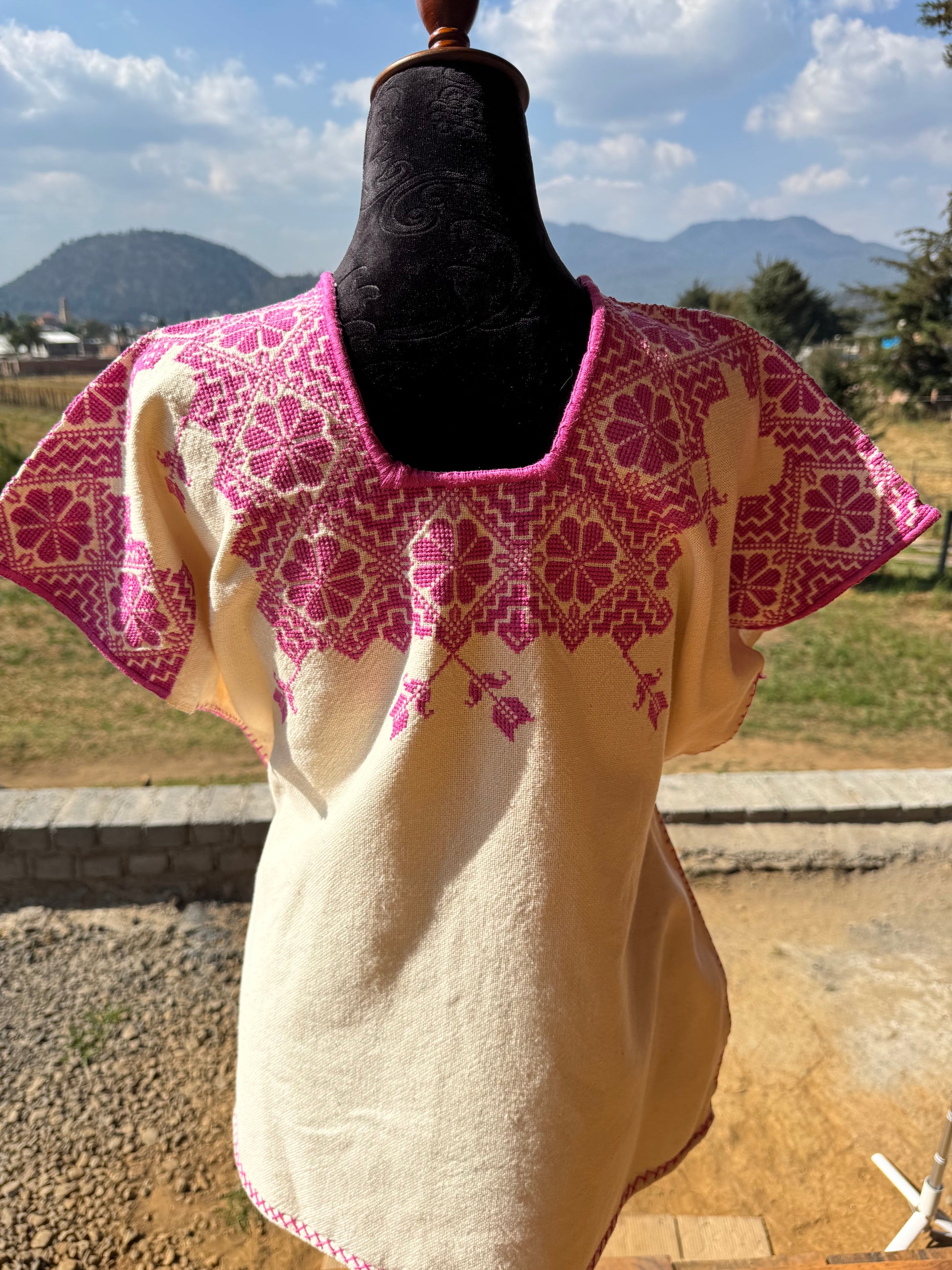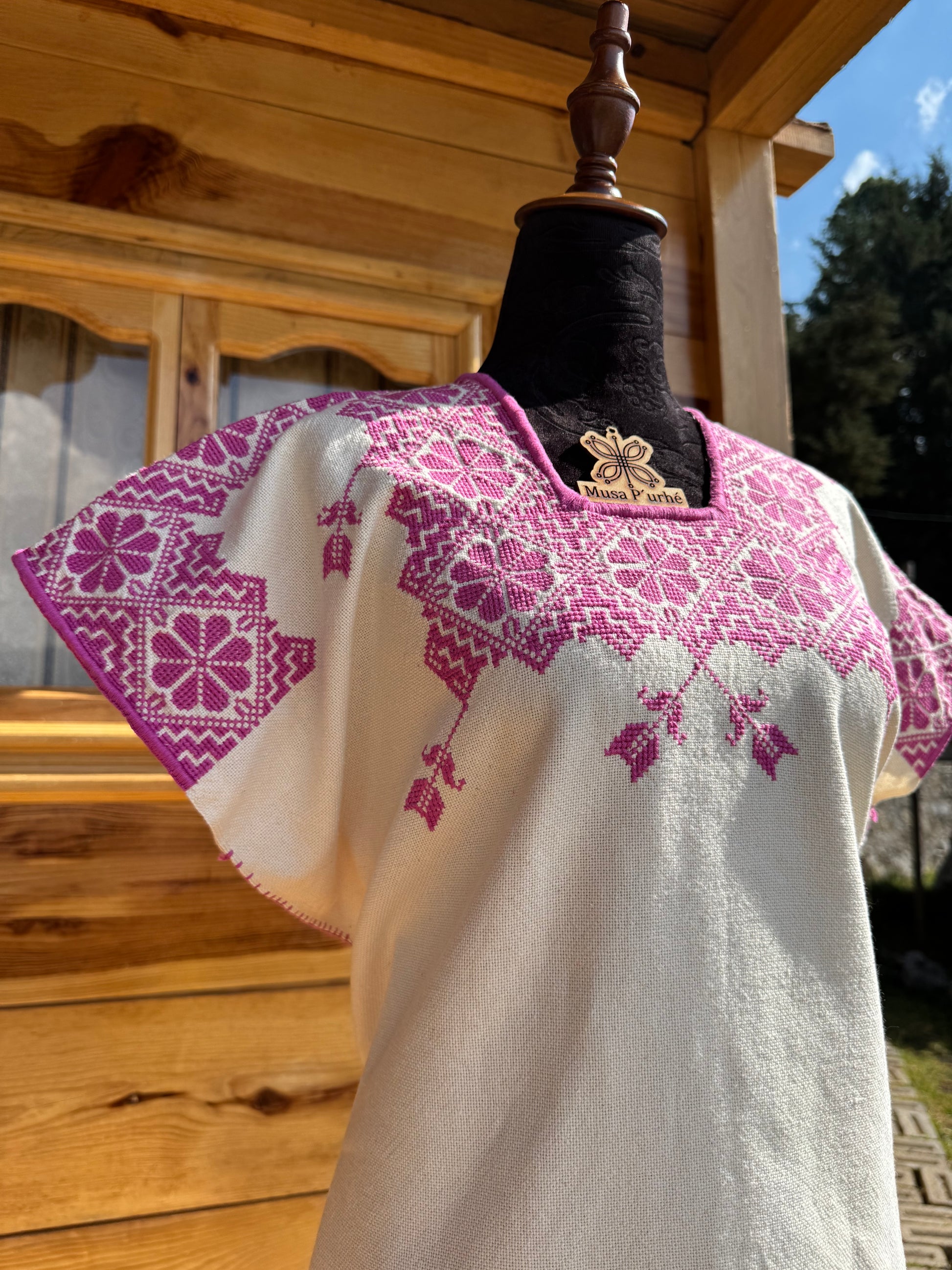 Tejido en telar rústico, confeccionado y bordado en punto de cruz totalmente a mano