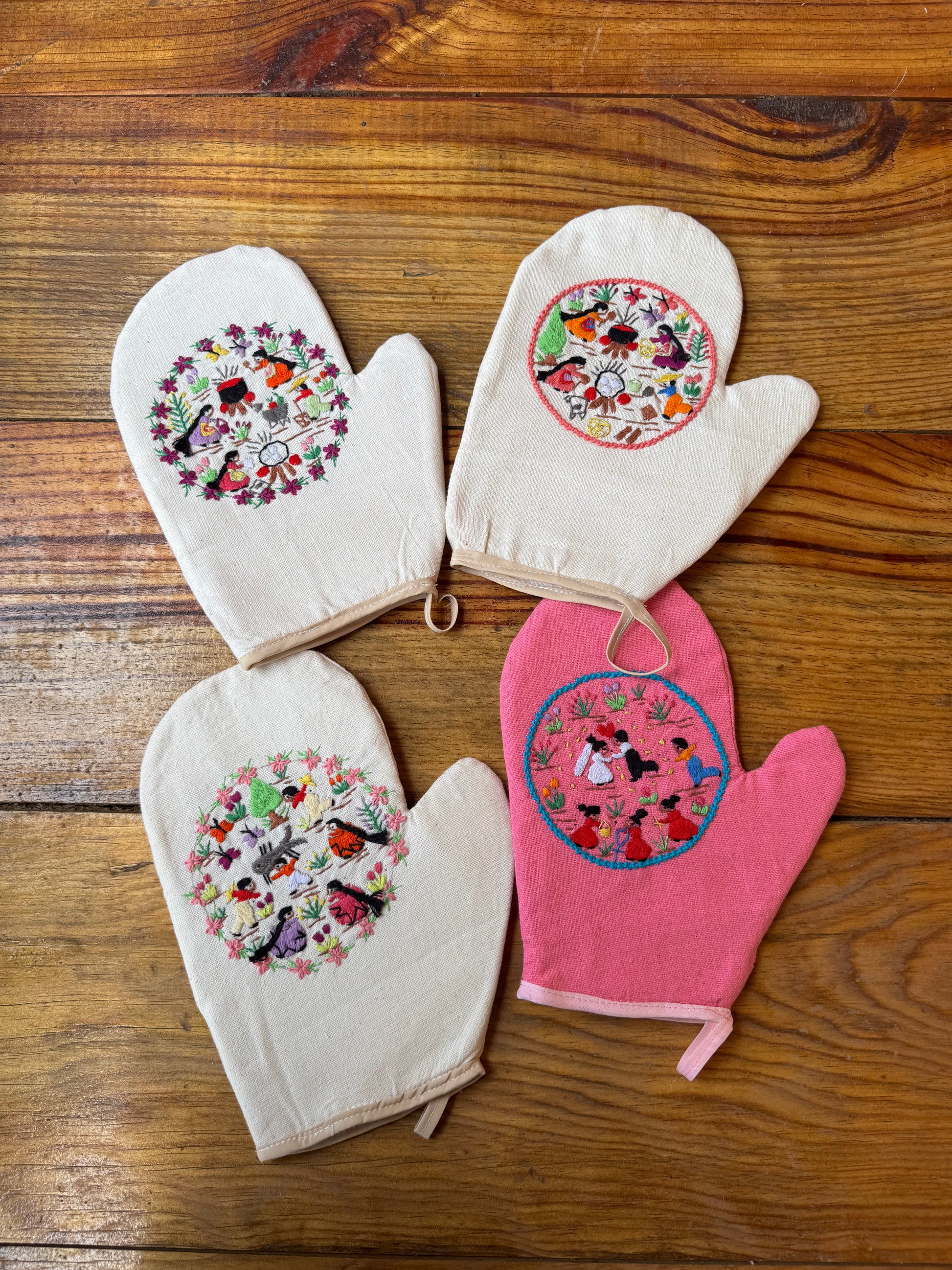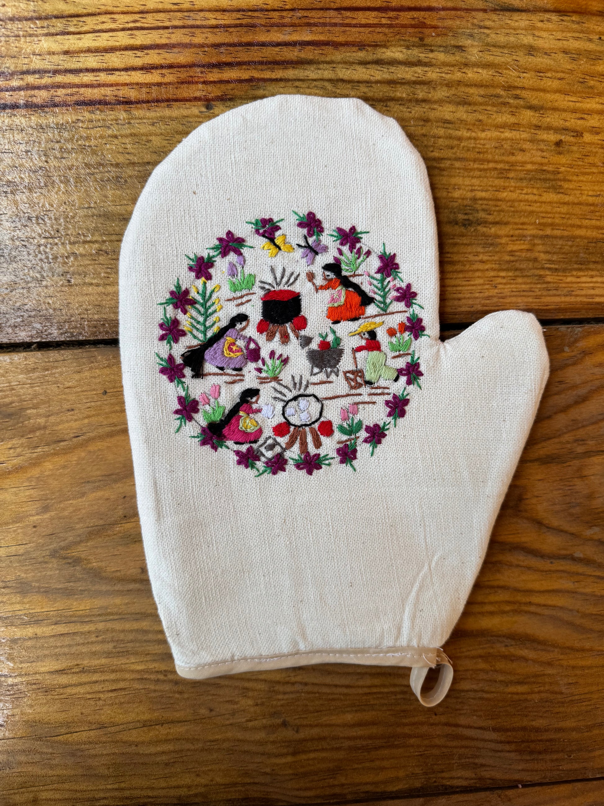 Tejido telar rústico, confeccionado y bordado de historias totalmente a mano