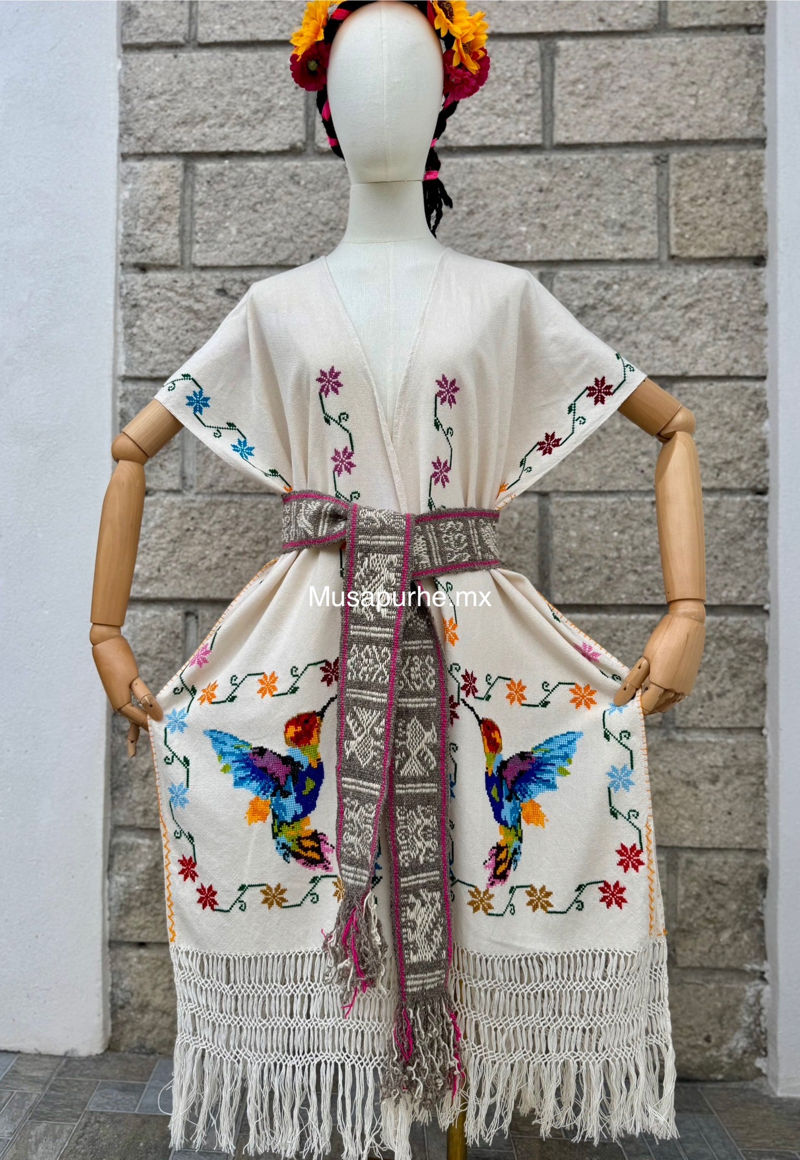 Tejido en telar rústico, confeccionado, empuntado y bordado en punto de cruz totalmente a mano
