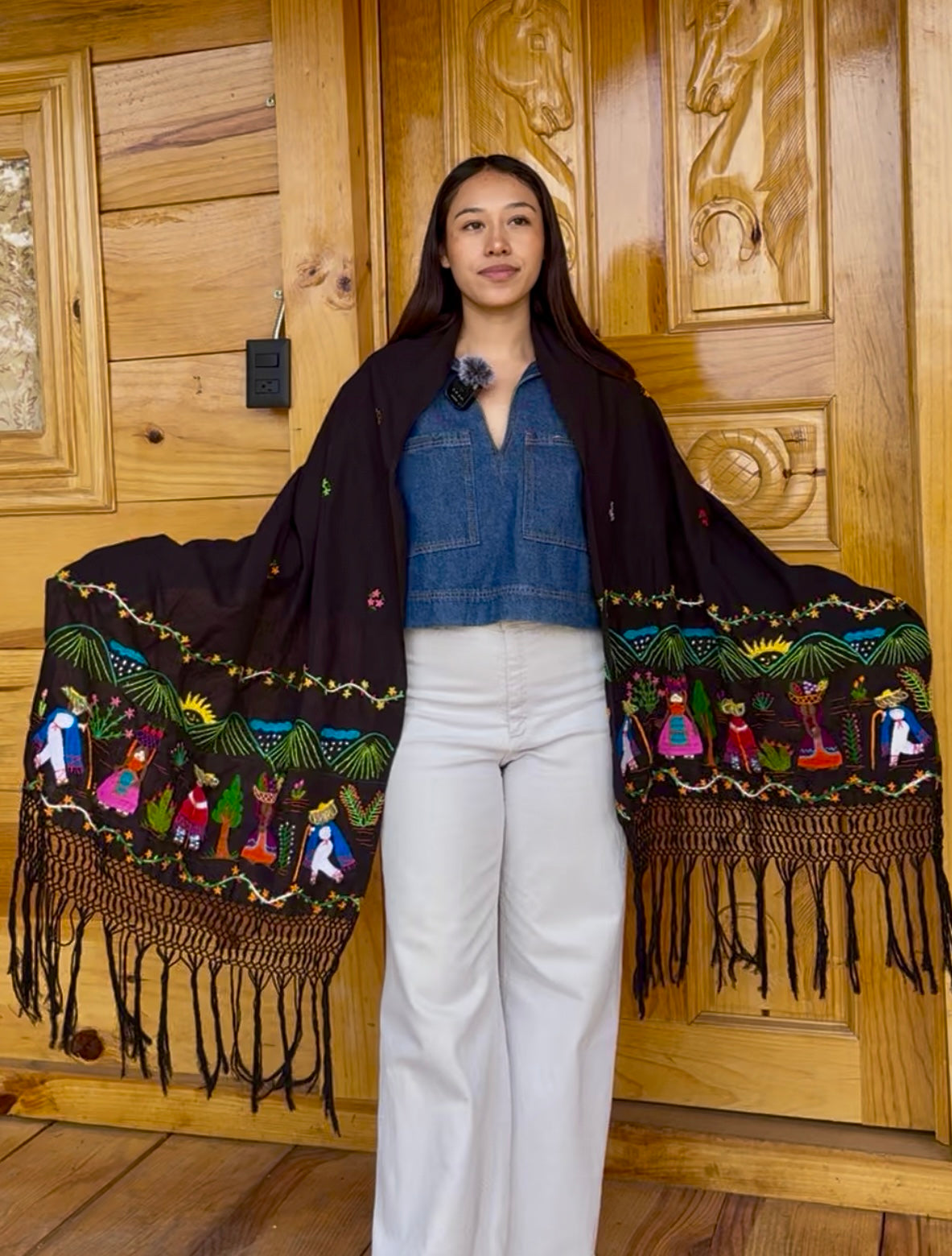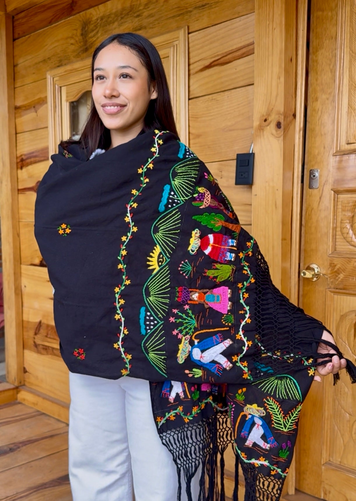 Manta artesanal 100% algodón, color negro, pigmentación artesanal.