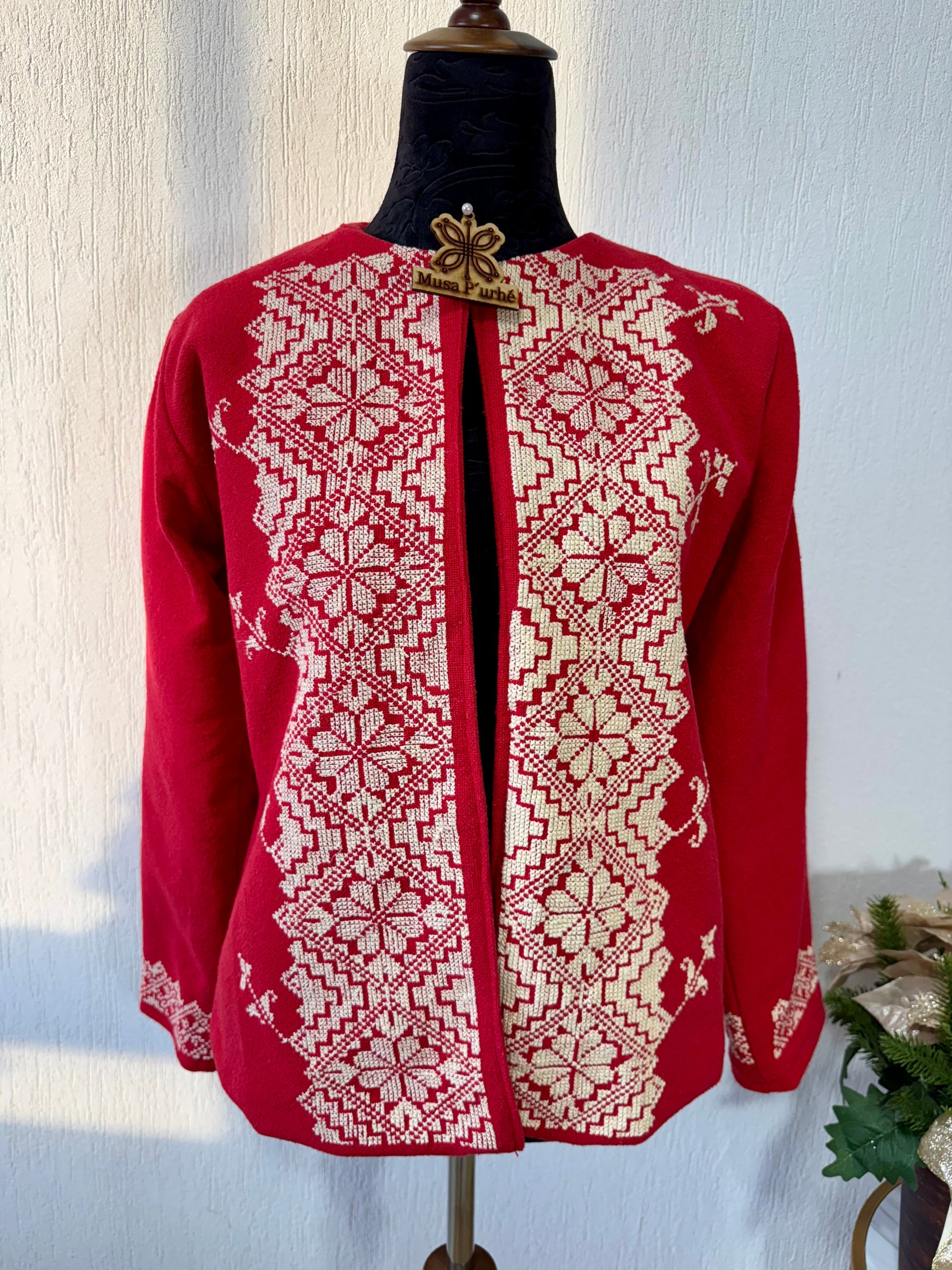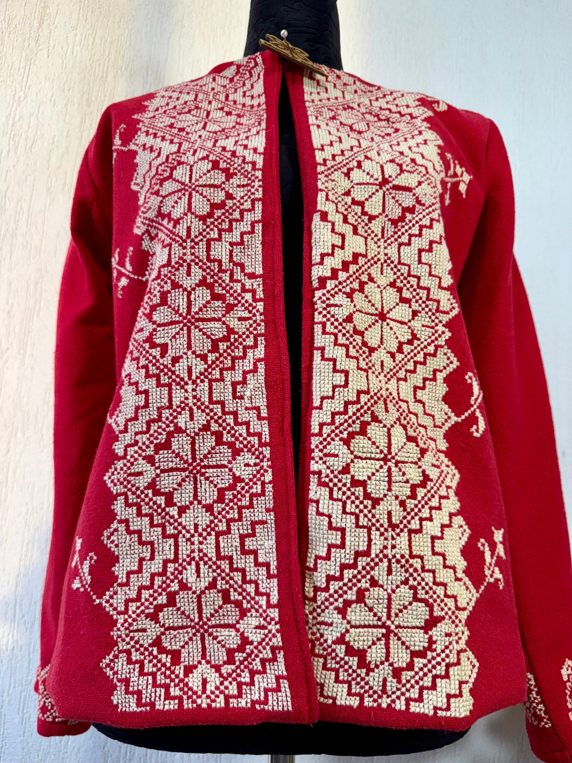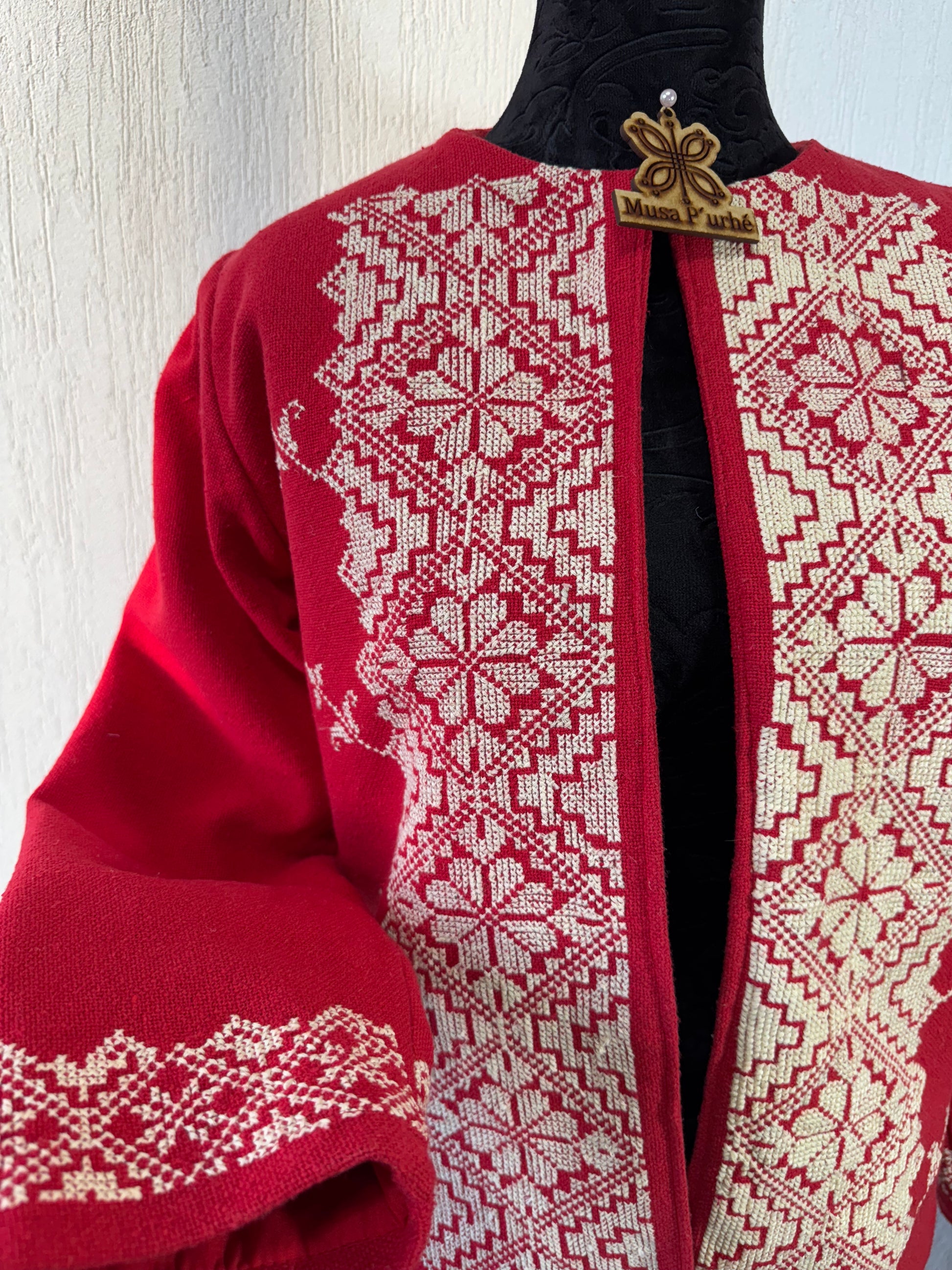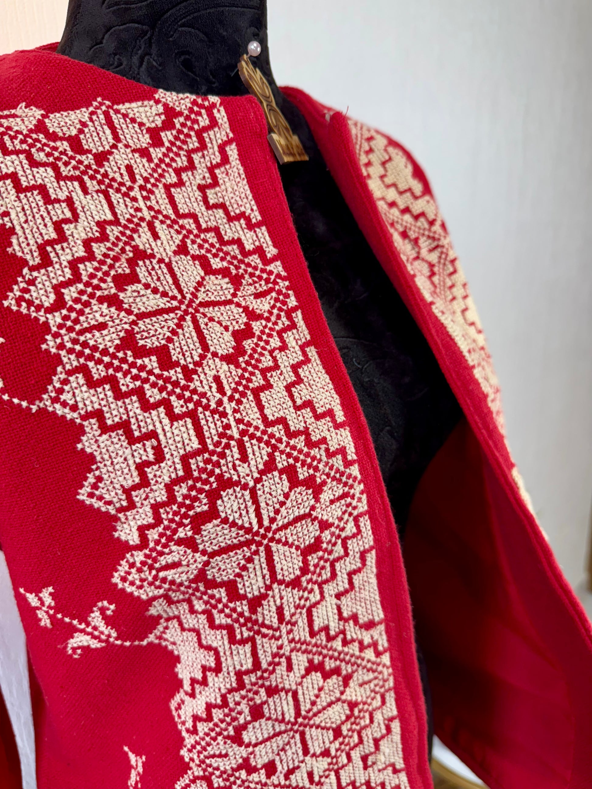 Tejido en telar rústico, confeccionado y bordado en punto de cruz totalmente a mano