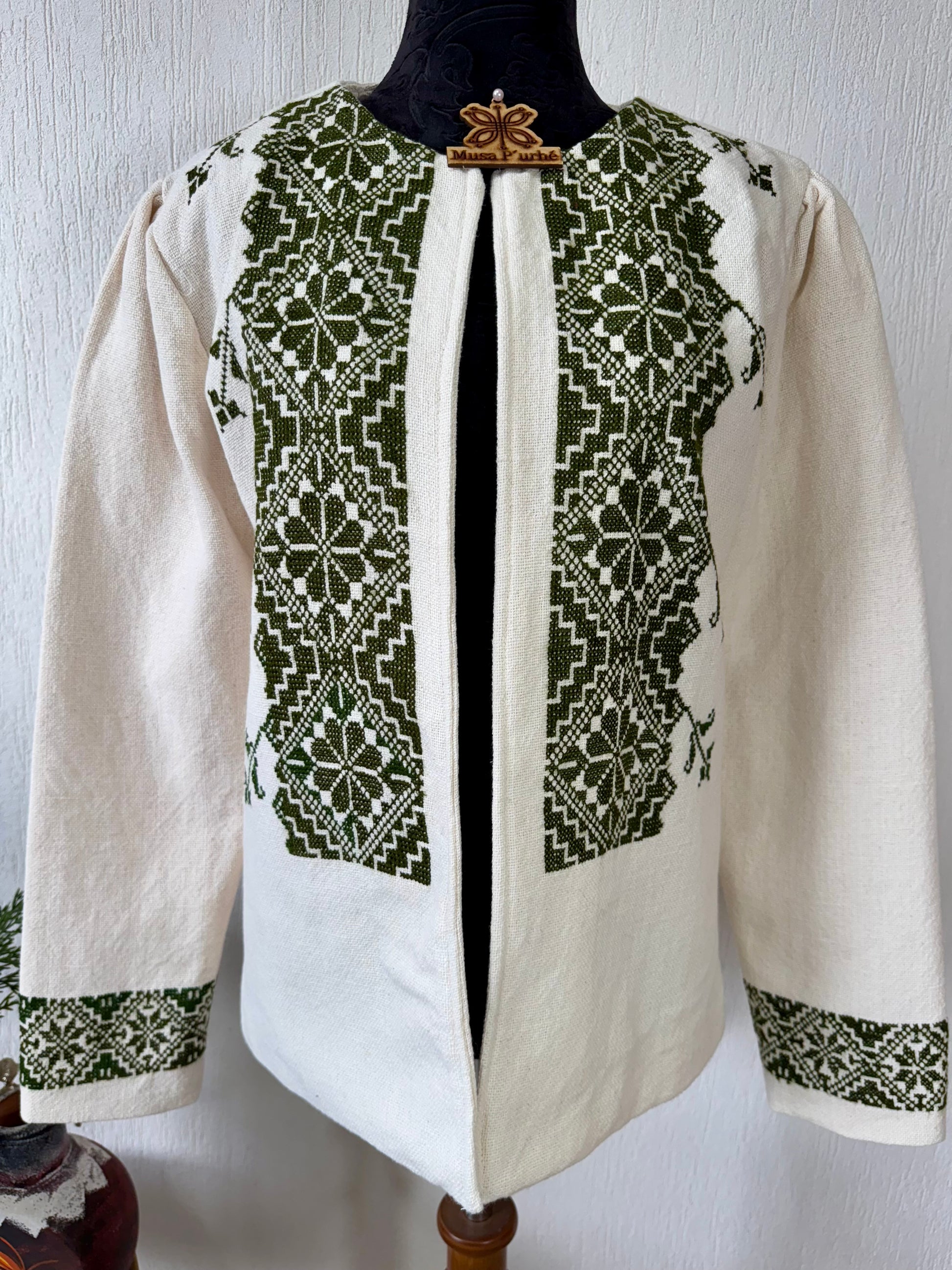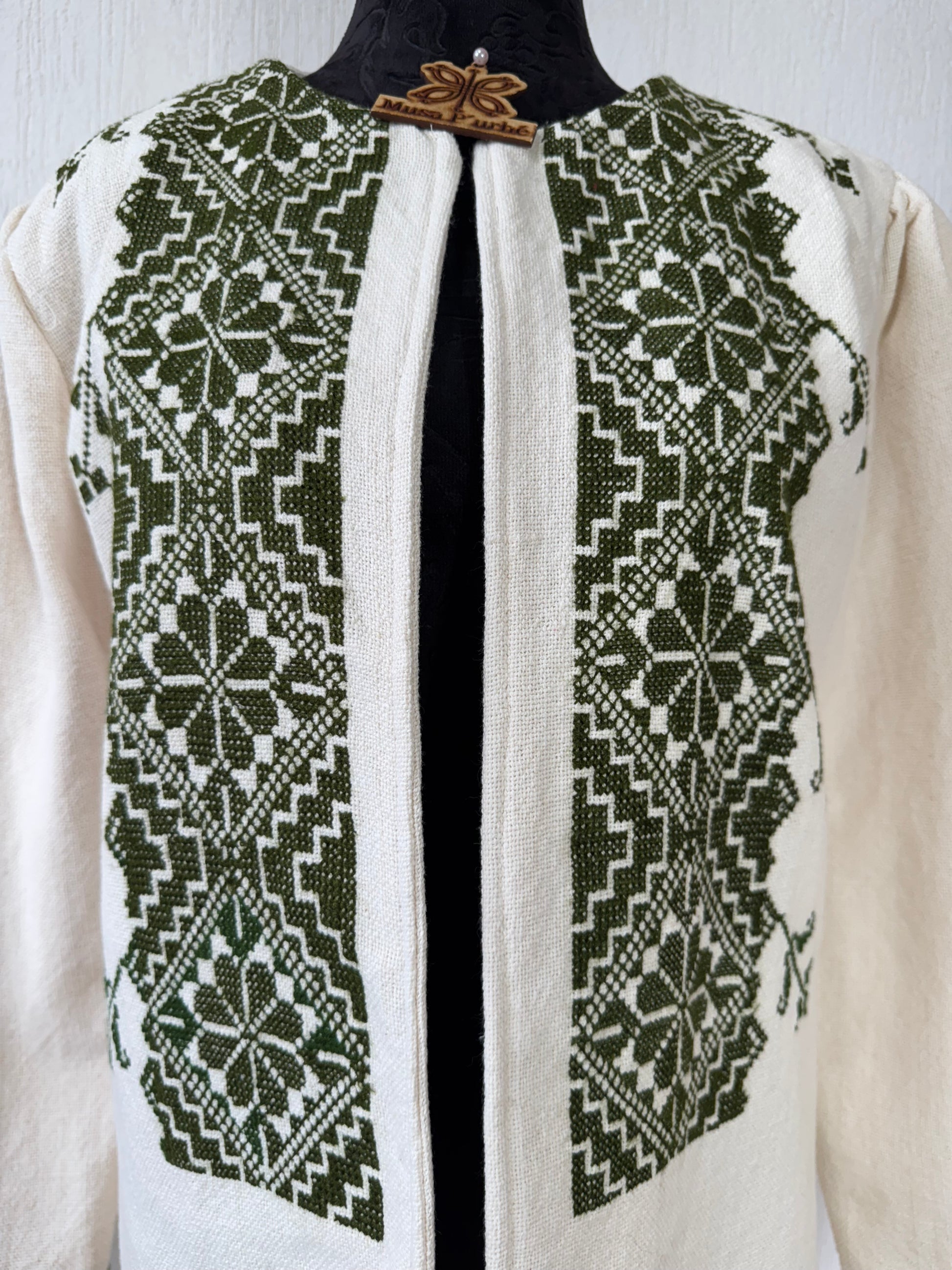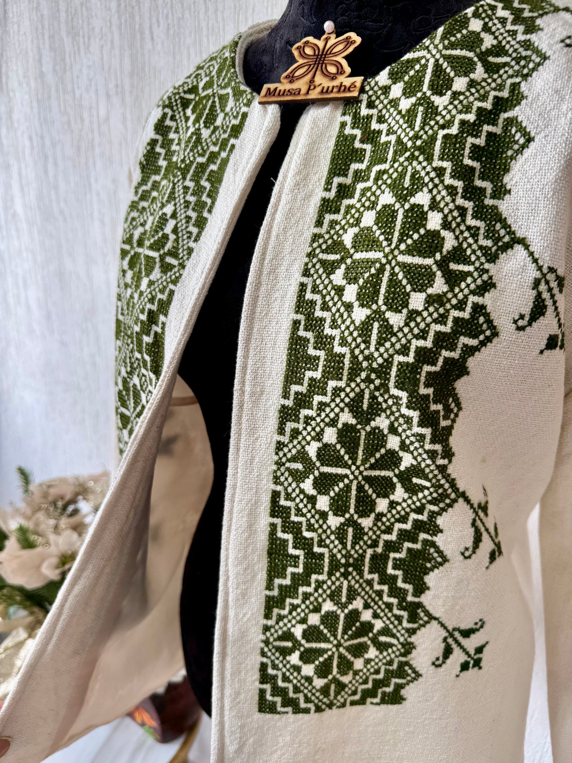 Tejido en telar rústico, confeccionado y bordado en punto de cruz totalmente a mano