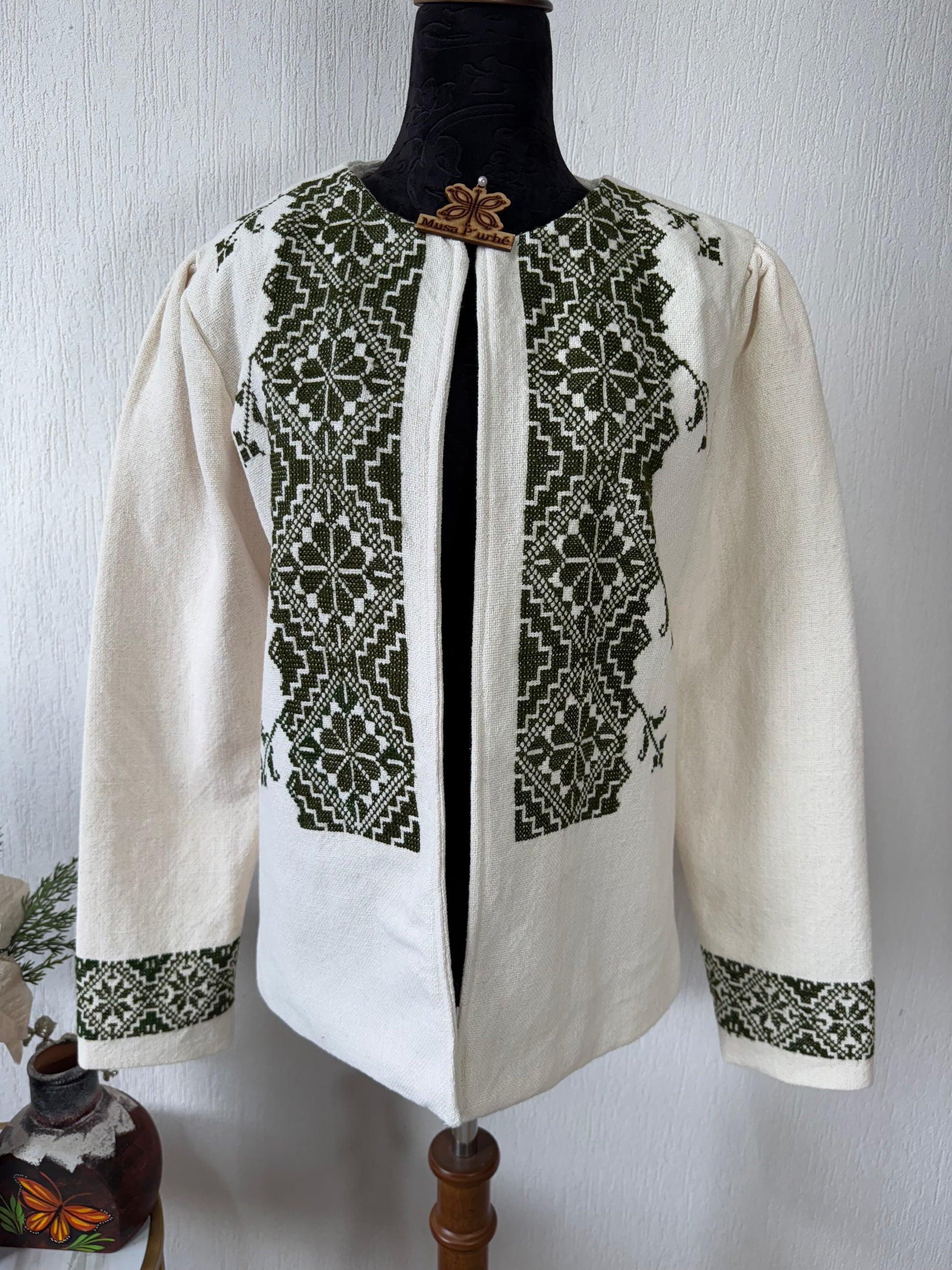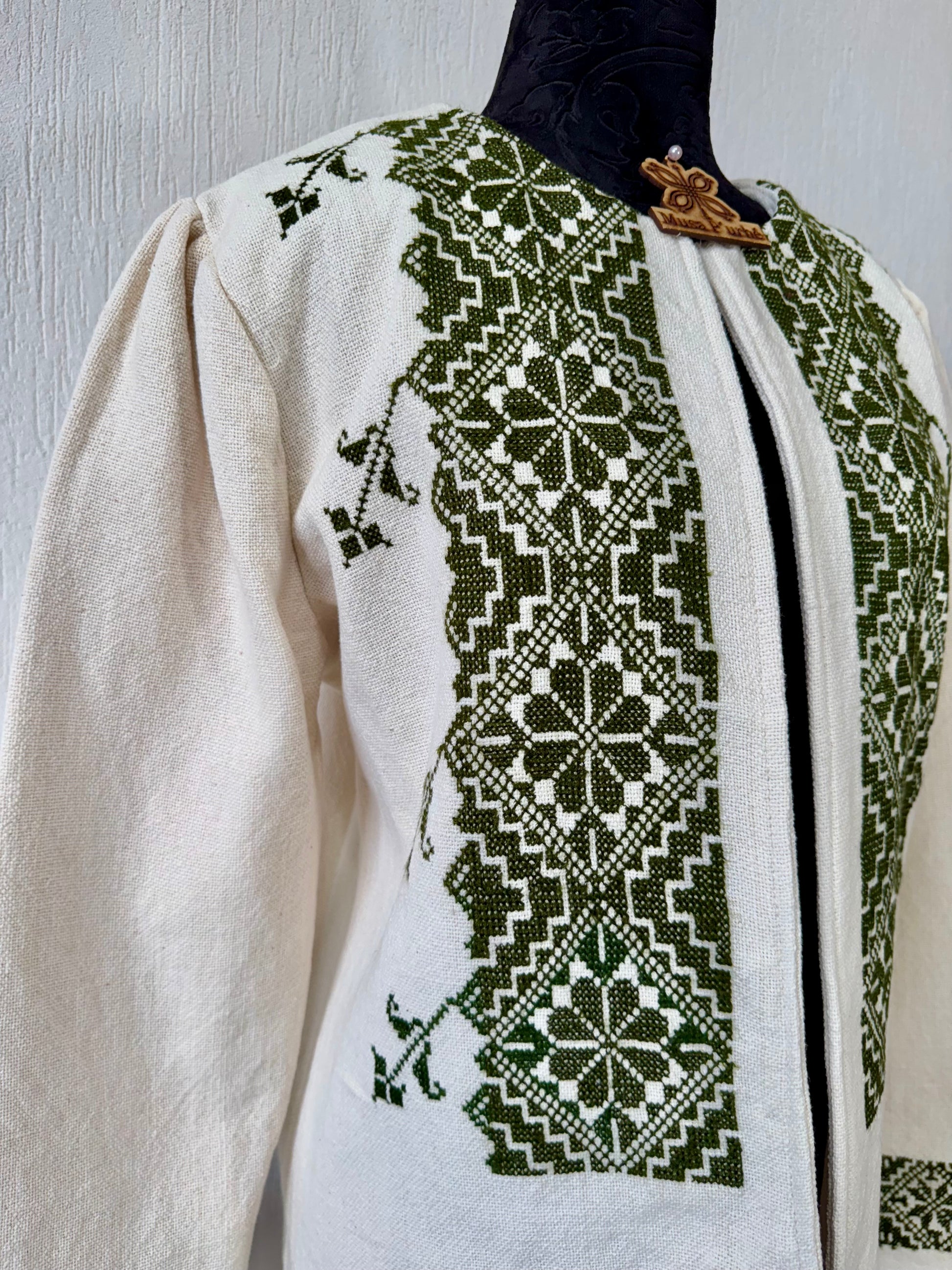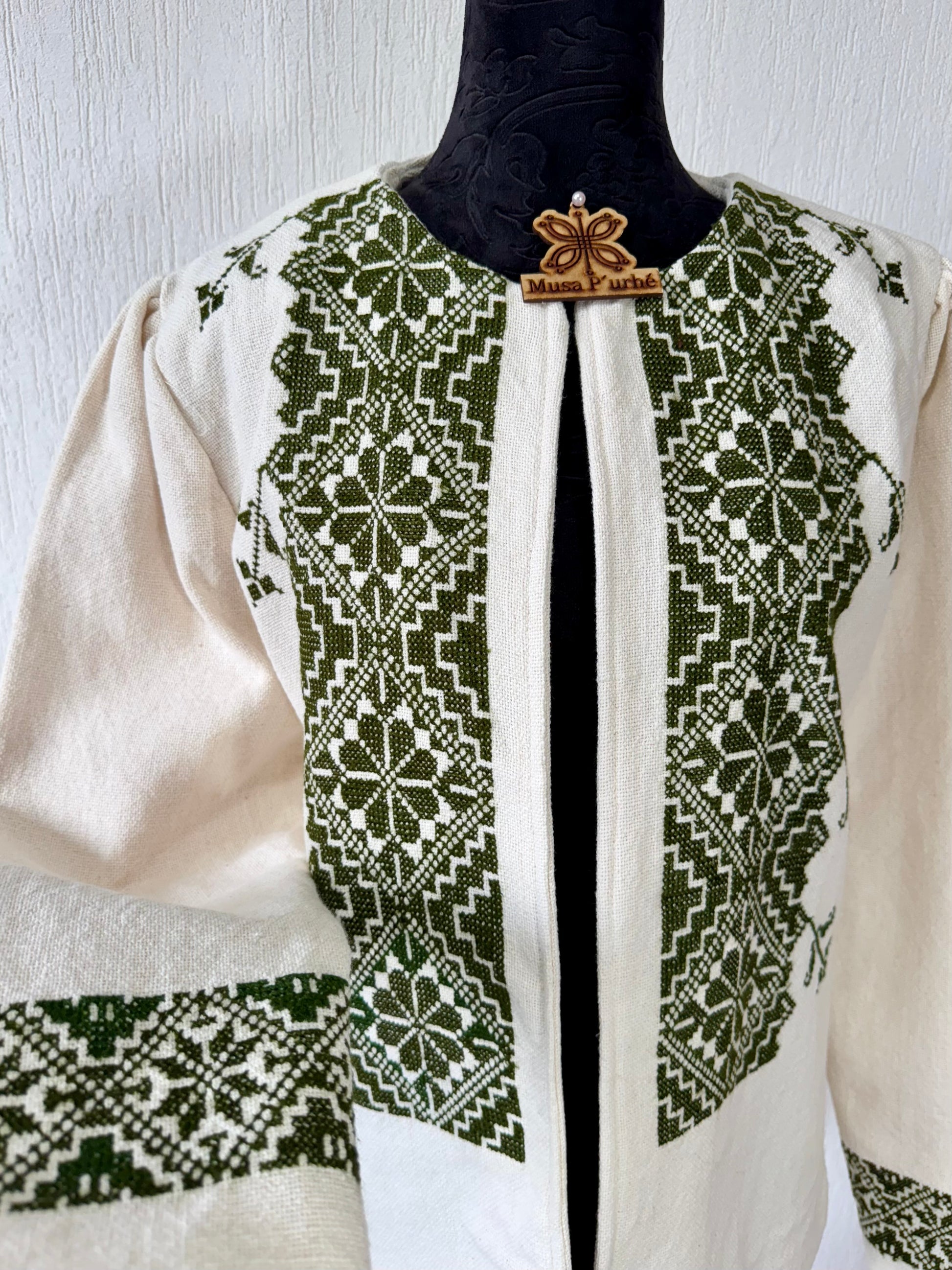 Tejido en telar rústico, confeccionado y bordado en punto de cruz totalmente a mano