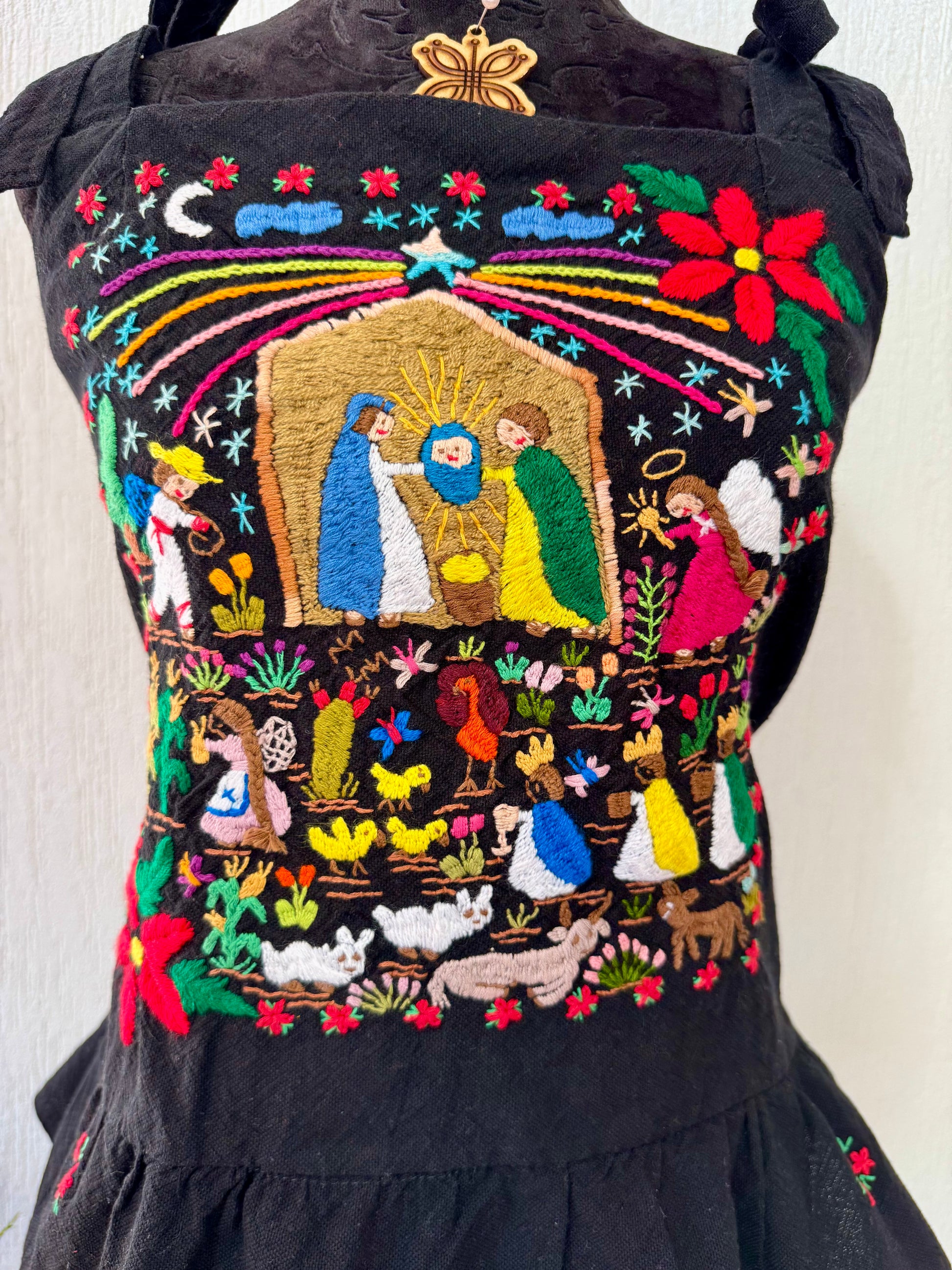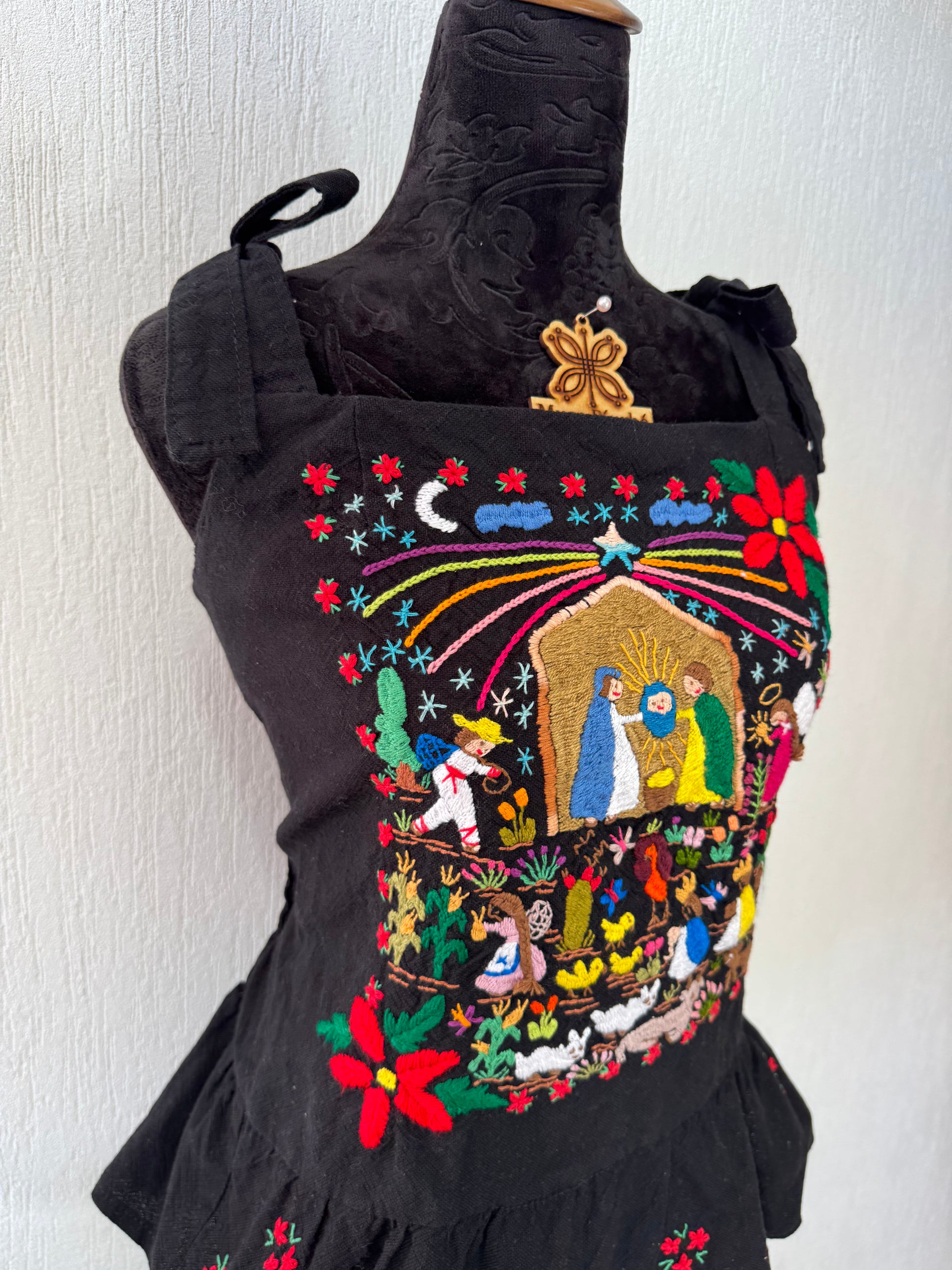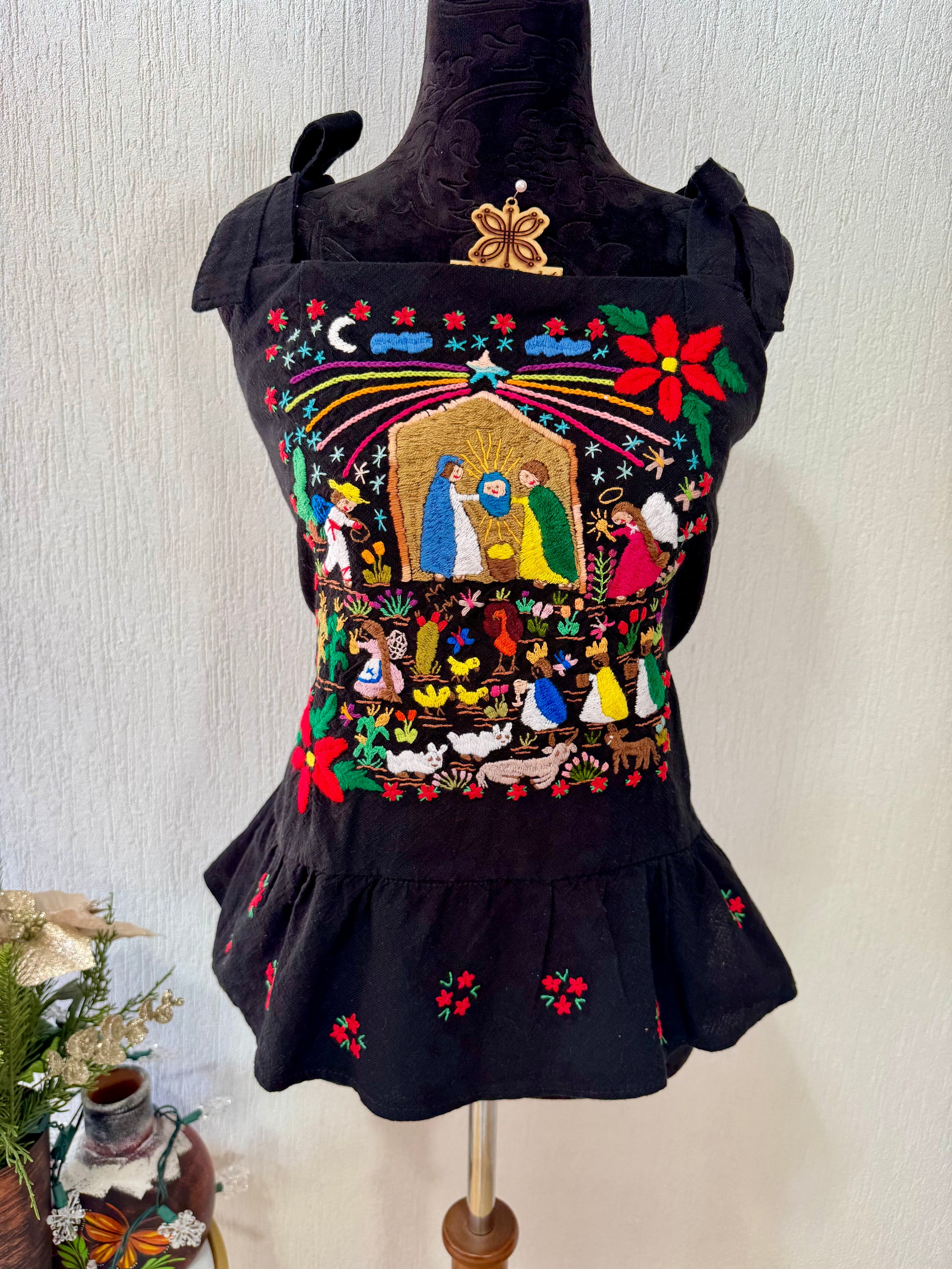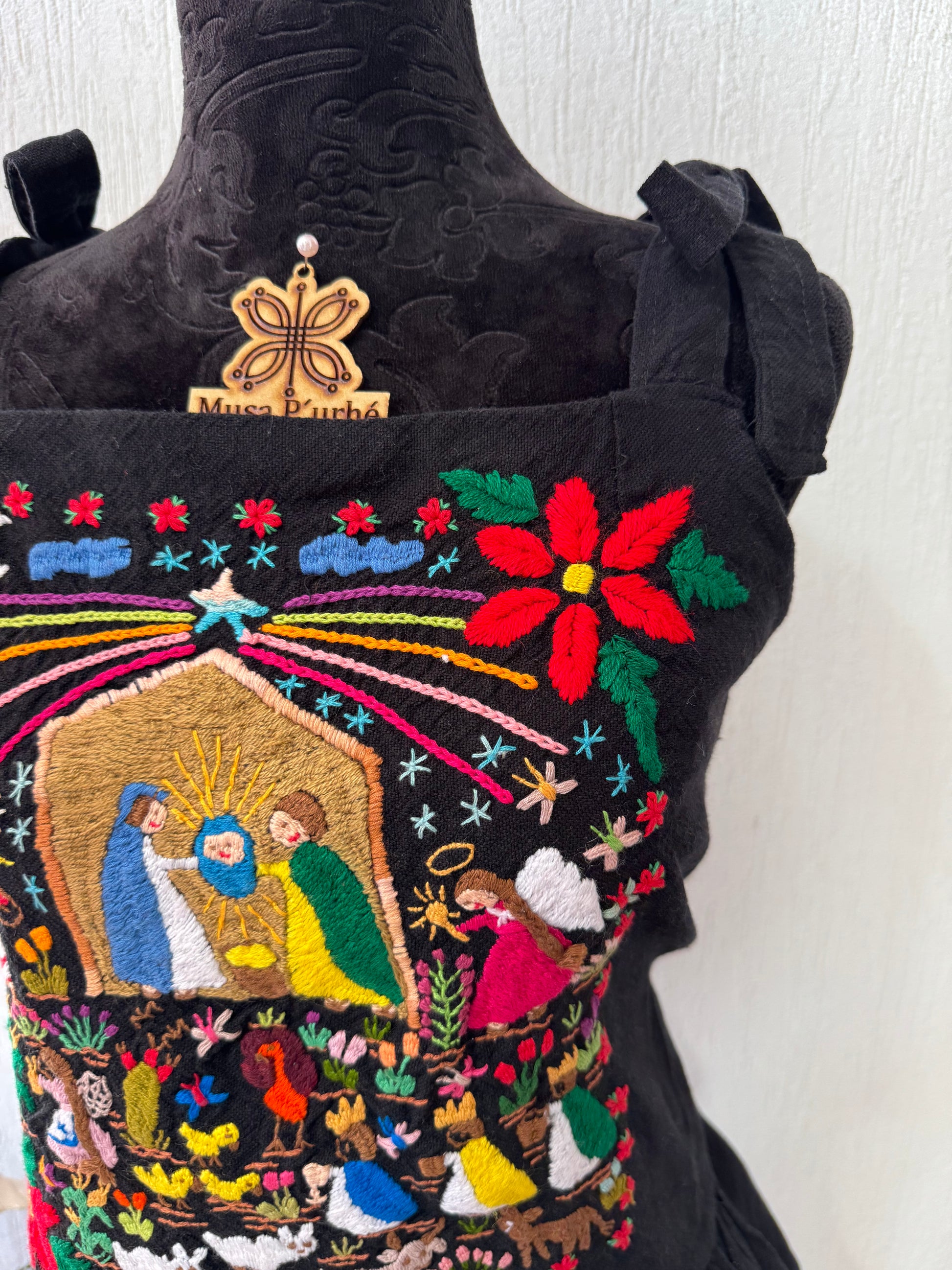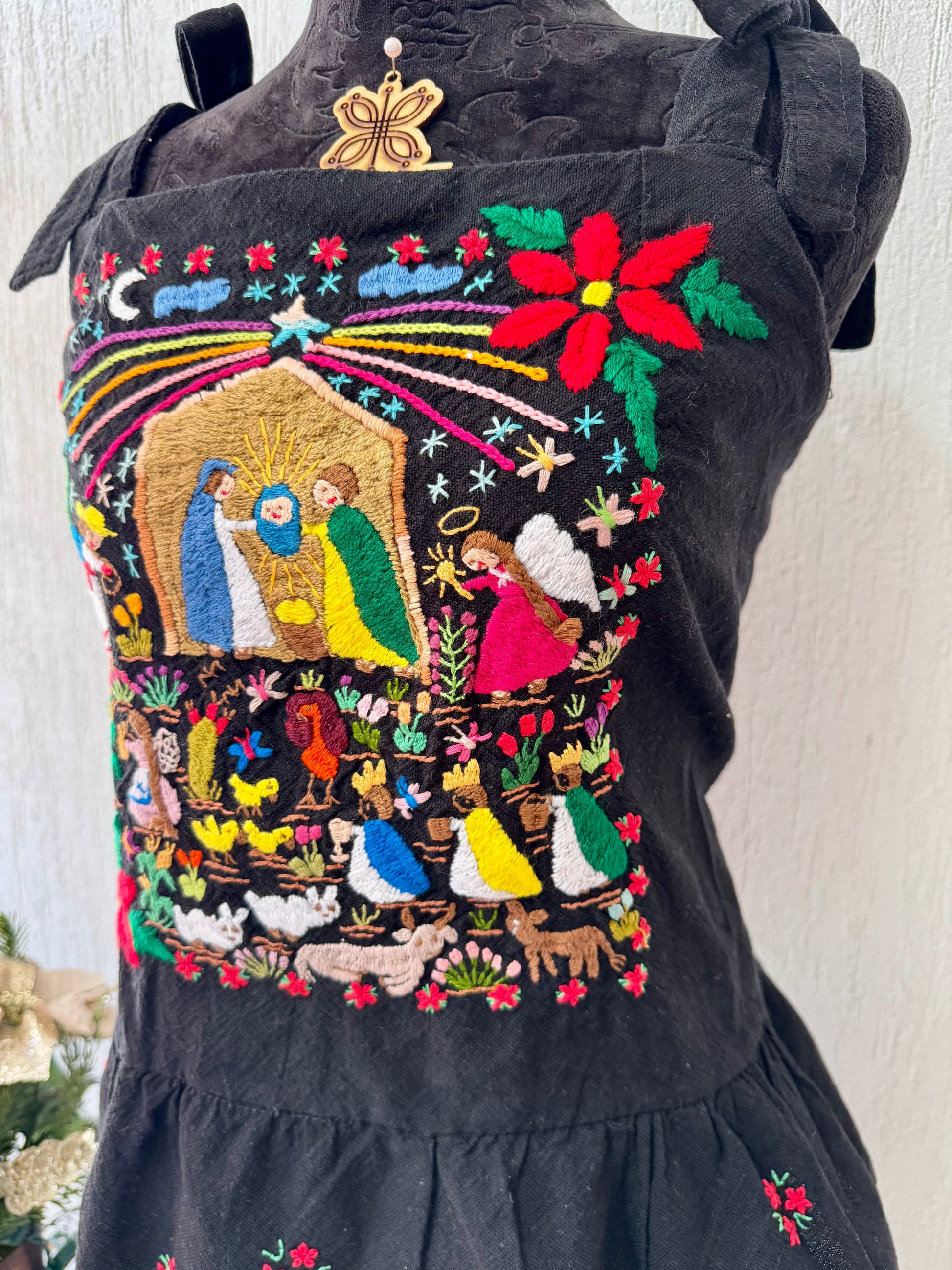 Tejido en telar rústico, confeccionado y bordado en punto de cruz totalmente a mano