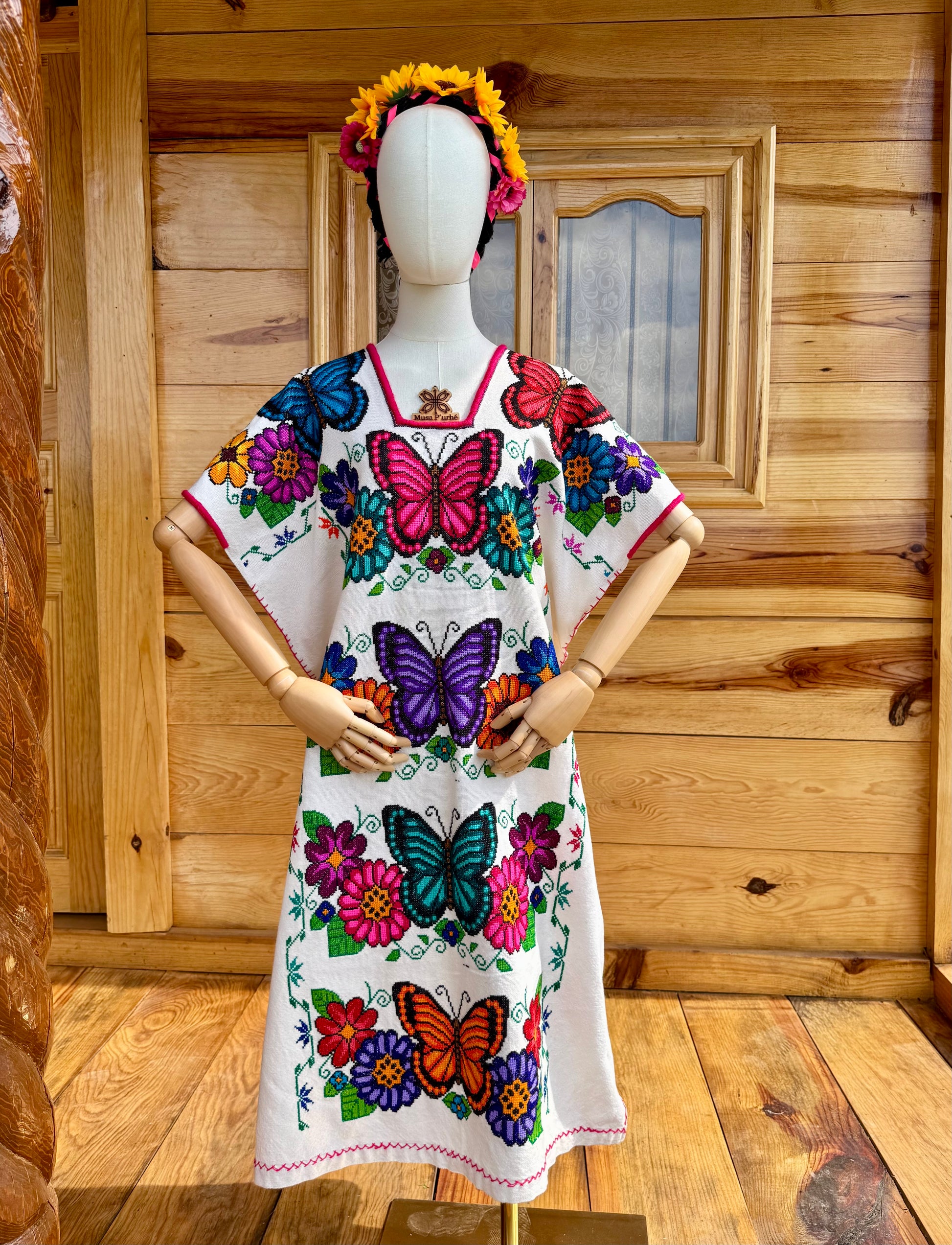 Tejido en telar rústico, confeccionado y bordado en punto de cruz totalmente a mano