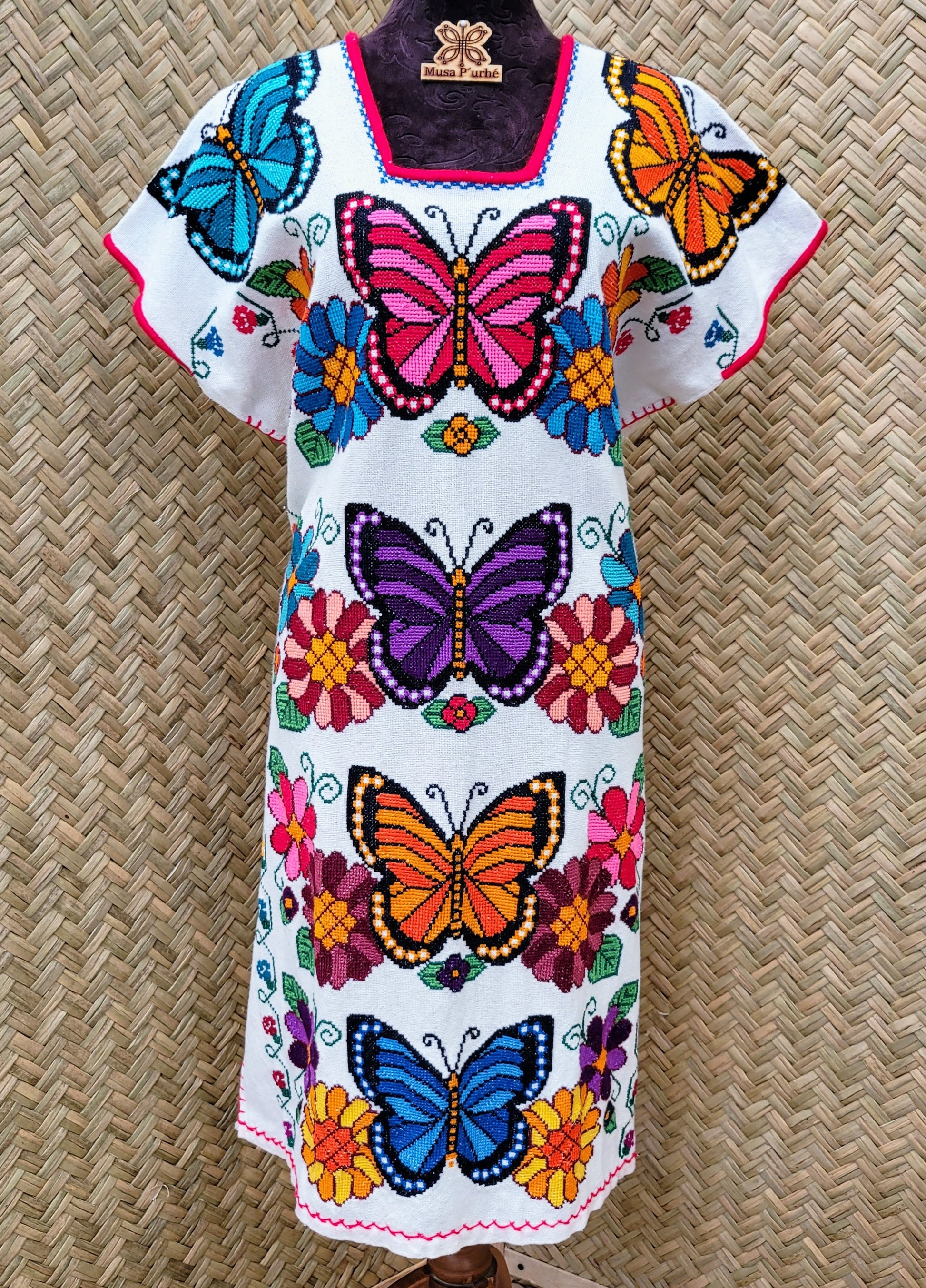 Tejido en telar rústico, confeccionado y bordado en punto de cruz totalmente a mano