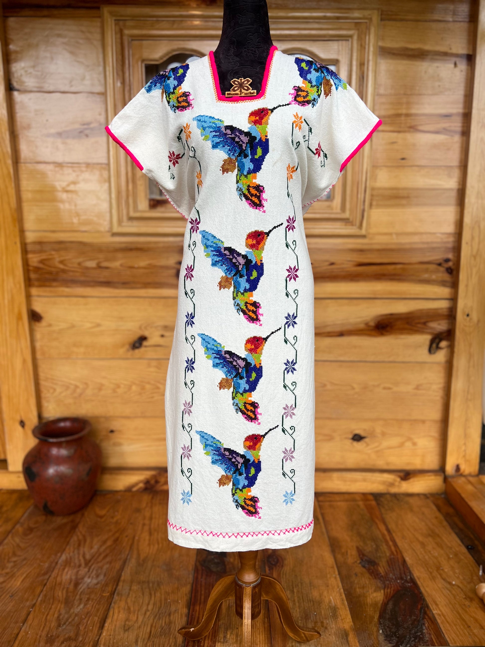 Tejido en telar rústico, confeccionado y bordado en punto de cruz totalmente a mano.